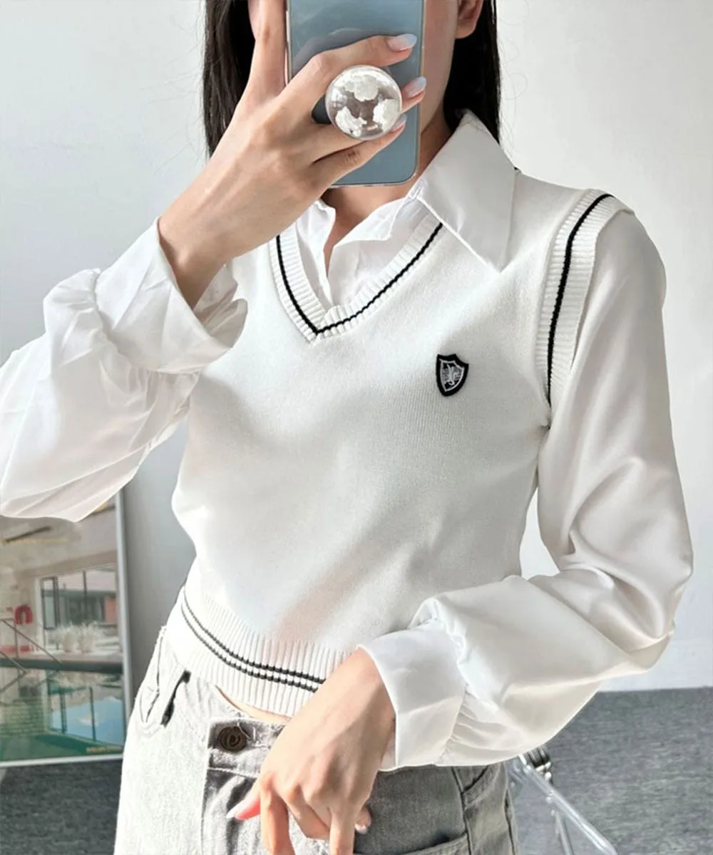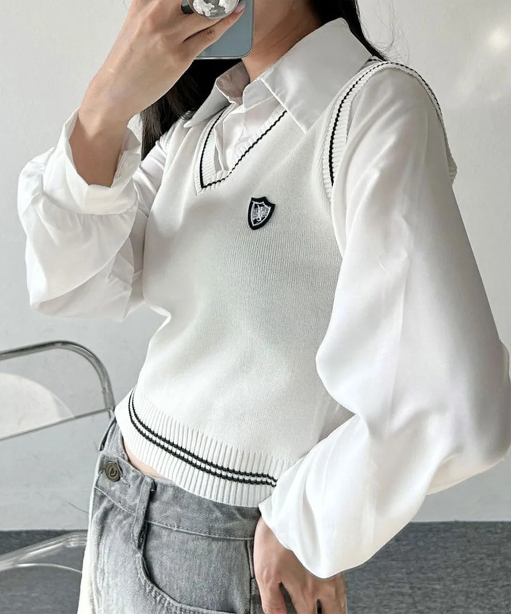 Выпущен комплект из топа с длинными рукавами, жилета и простой рубашки, создающий спокойный, классический образ. Еще одна привлекательная особенность – 100% акриловый материал, который не вызывает зуда и приятен на ощупь. Немного укороченная длина подчеркнет вашу фигуру. Рост модели: 169 см. Размер: бежевый, черный, серый, слоновая кость / свободный.