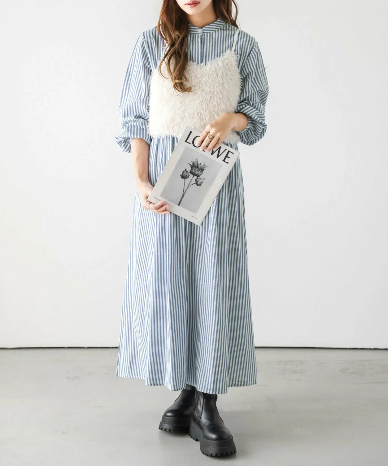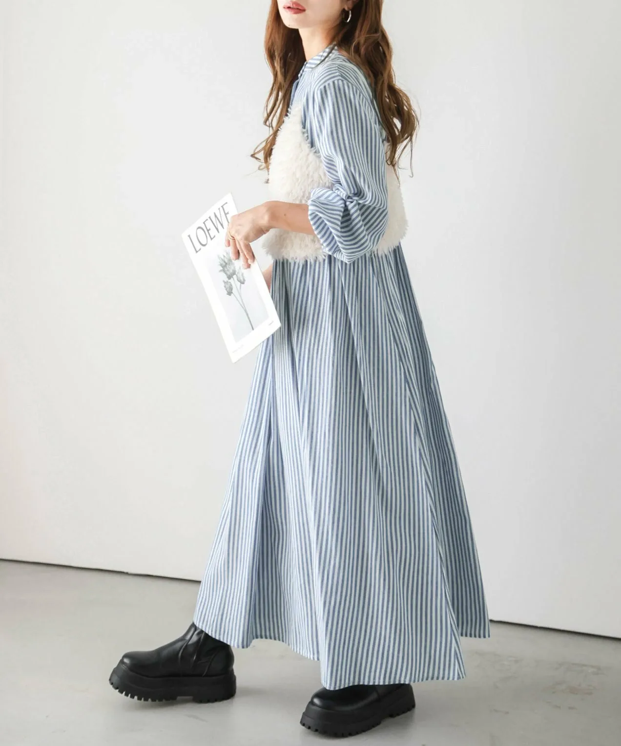 Платье-рубашка со сборками La-Gemme, цвет Blue Stripe 4 721₽