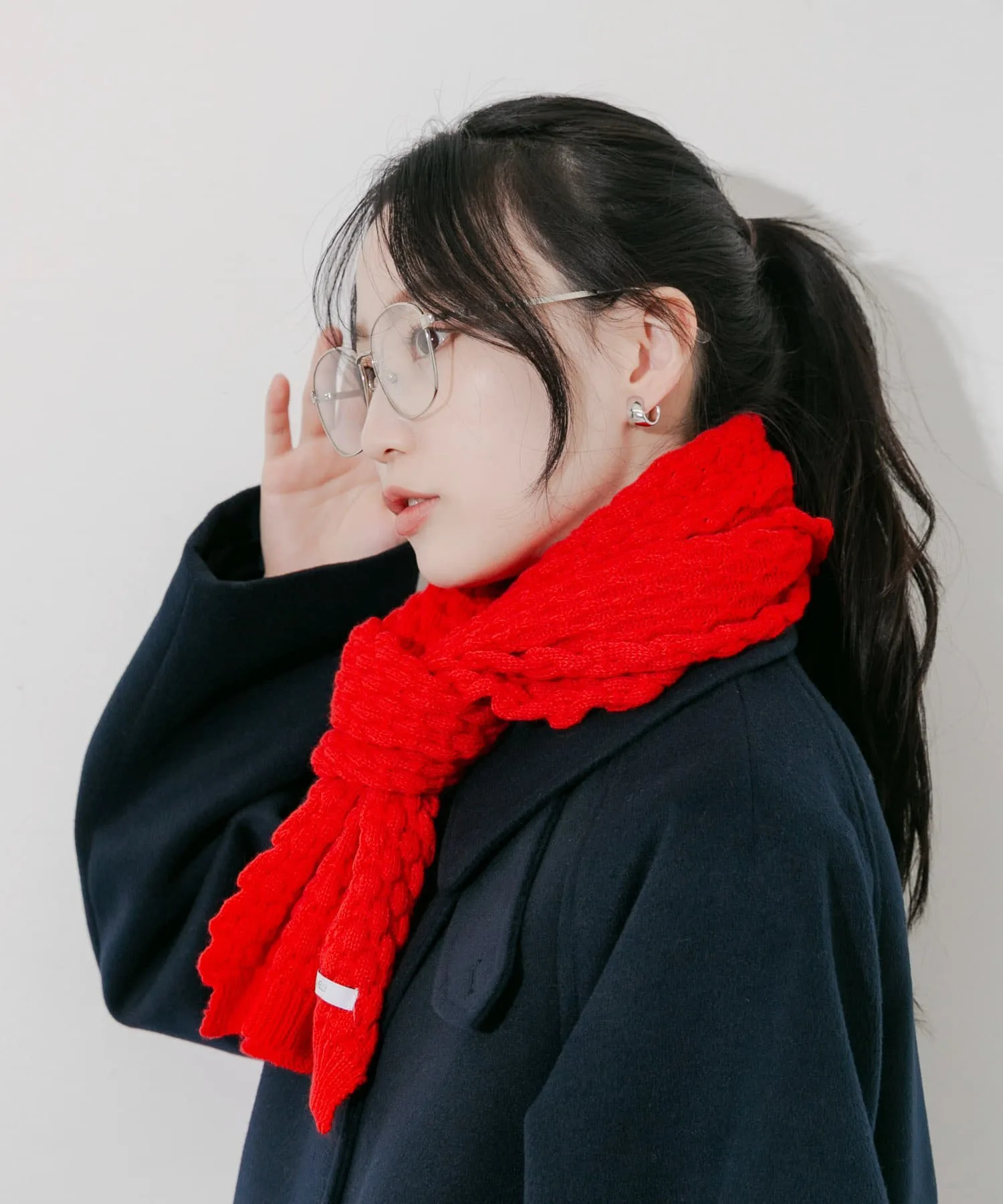 Рельефная, трехмерная вязка этого шарфа придает ему свежий вид.