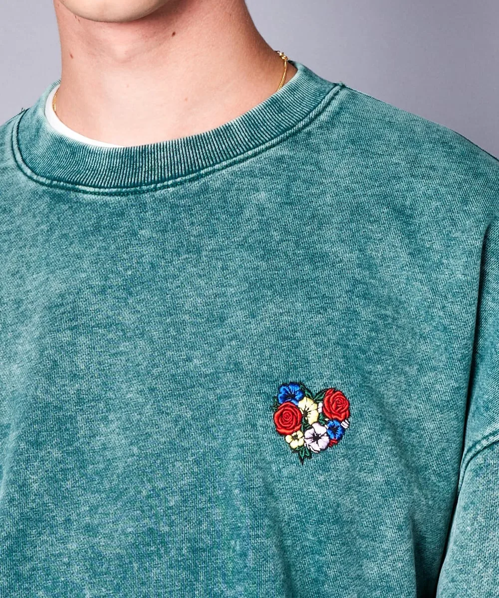 Вышивка в виде сердечек на груди добавляет стильный акцент и завершает общий образ.