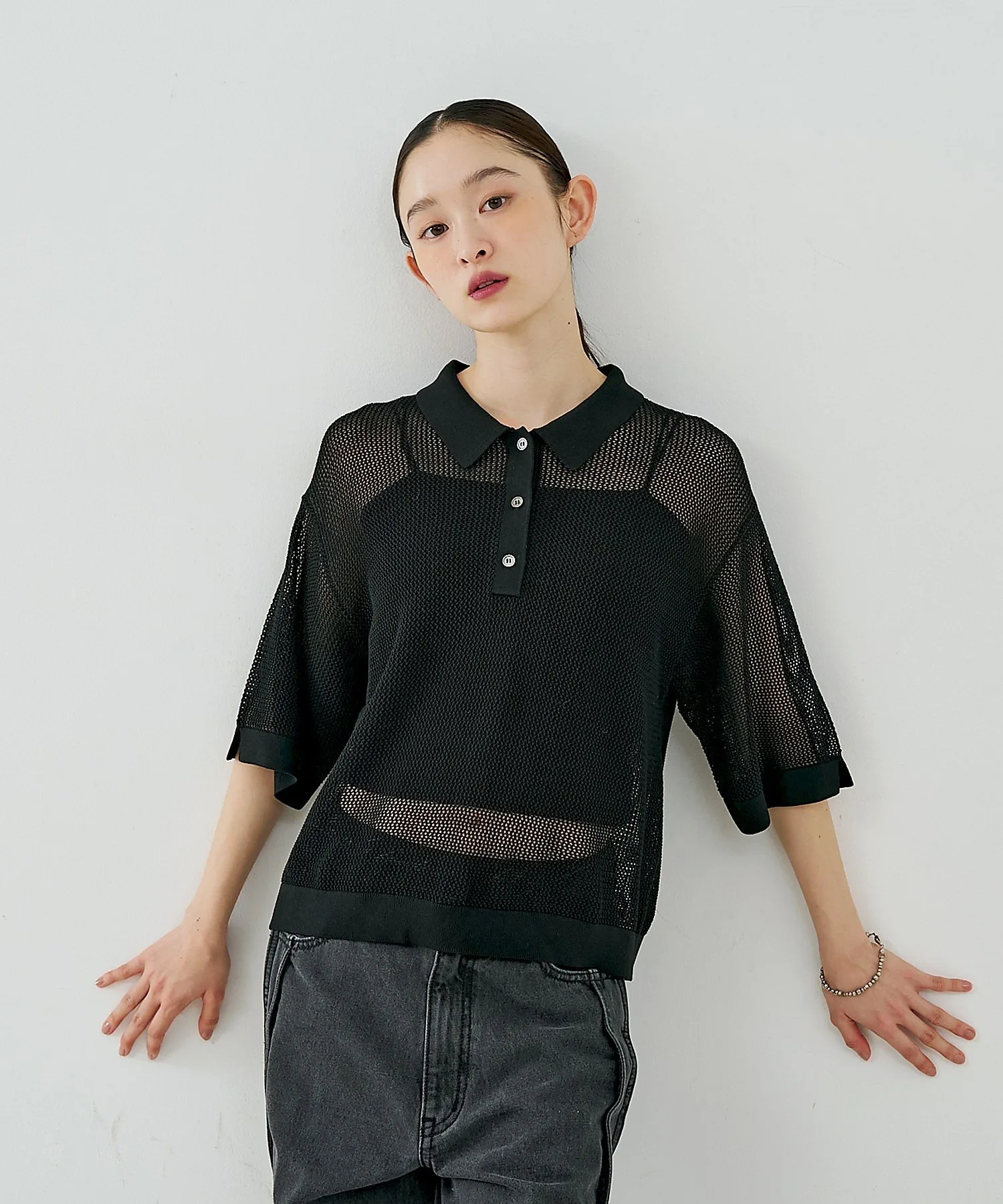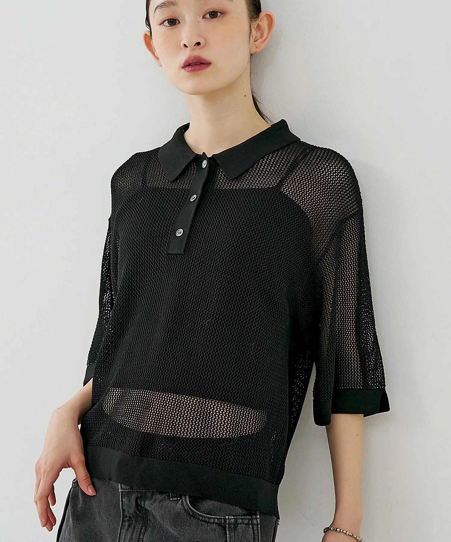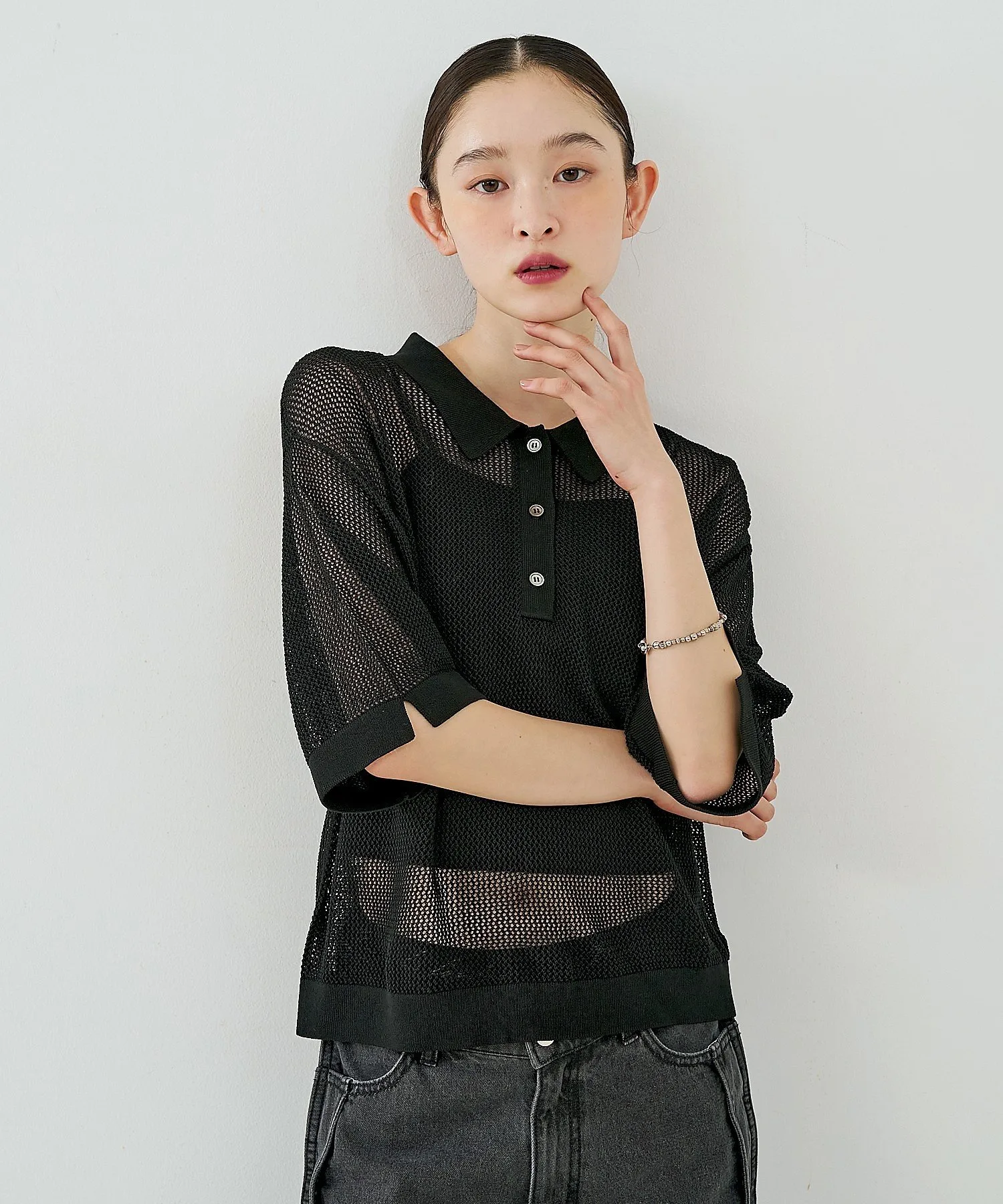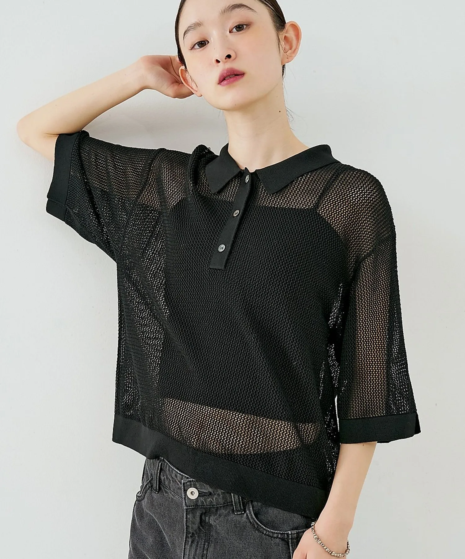 Поло из "легкой, прозрачной" ткани, сочетающее в себе ощущение прохлады и изысканный вид. Трикотажное поло NOMINE изготовлено из мягкой ткани, состоящей на 89% из вискозы и на 11% из нейлона, идеально подходящей для лета. Ключевая особенность – прозрачность легкой сетчатой ткани, позволяющая создавать разнообразные многослойные образы в зависимости от нижнего белья. Свободный, прямой силуэт (ширина 53 см, длина 52,5 см) и рукава средней длины (24,5 см) до локтей создают непринужденный, расслабленный образ. Доступно в четырех цветах: однотонный (фиолетовый/черный) и полосатый (светло-серый/коричневый), что делает его универсальным для самых разных случаев, от повседневных до официальных.