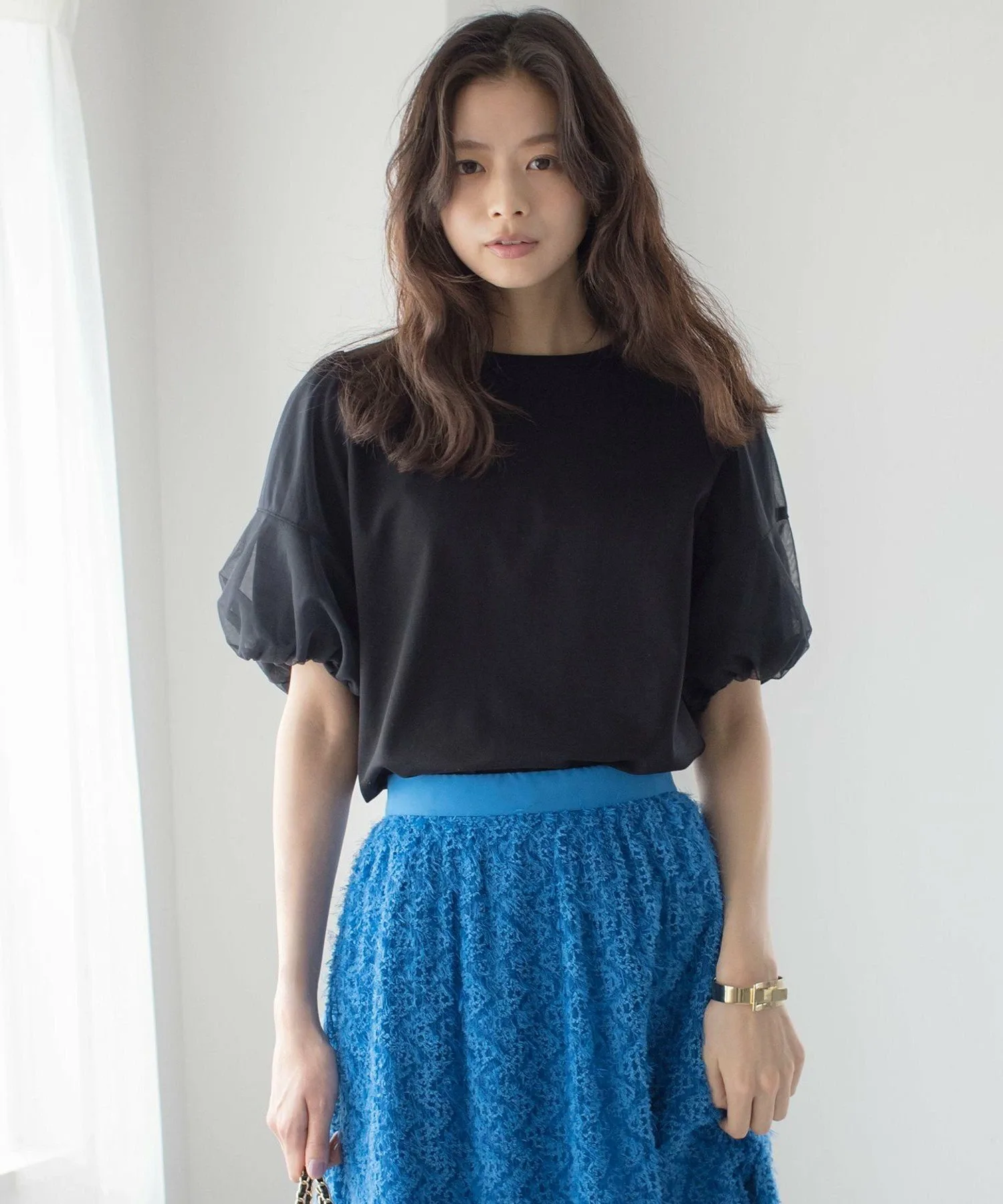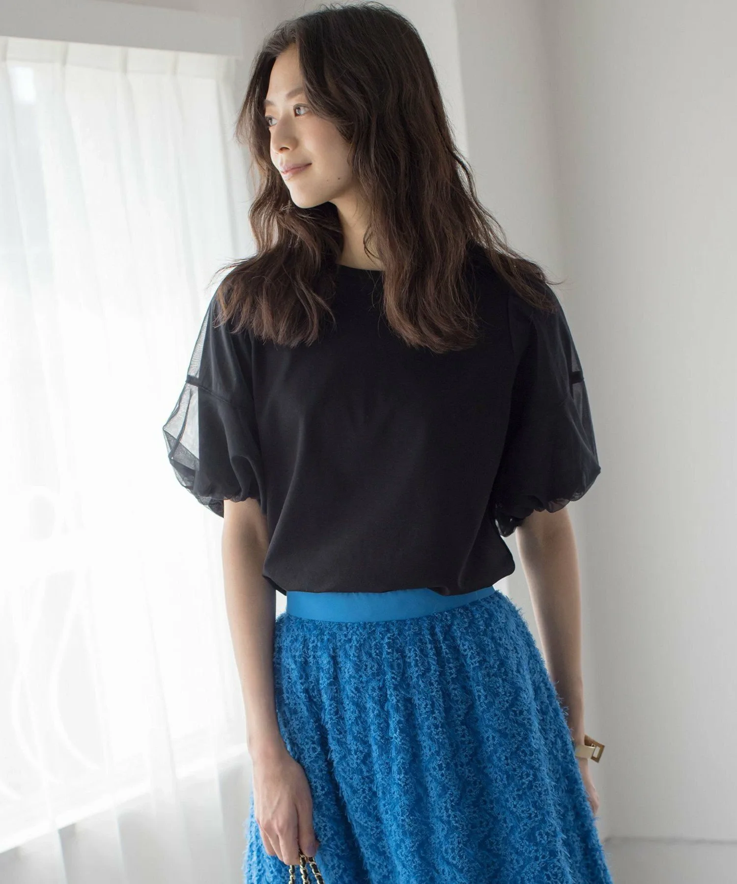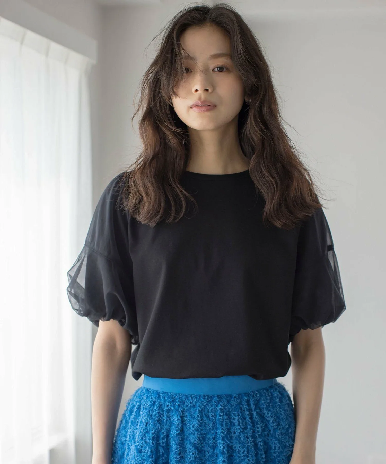 Дизайн: Эта футболка сочетает в себе тюль из разных материалов для создания великолепного образа. Свободный крой обеспечивает четкий силуэт. Женственные рукава из тюля создают современный, трехмерный эффект, что делает футболку подходящей и для взрослых. Нежный, полупрозрачный тюль используется в два слоя, создавая трехмерный эффект с контрастным дизайном. Жесткая тканая подкладка рукавов создает ощущение плотности, формируя прочную, трехмерную отделку, благодаря чему футболка удобна в ношении для взрослых. Изящный воротник, плотно прилегающий к шее, сшит в стиле рубашки, чтобы предотвратить его растяжение, создавая аккуратный и опрятный вид. Благодаря использованию элементов дизайна, часто встречающихся в рубашках, таких как кокетка, закругленный нижний край и строчка, эта изысканная футболка для взрослых ориентирована на аккуратный и опрятный вид. Материал: Тюль/Эта ткань понте изготовлена из 100% хлопковой пряжи. Мы сосредоточились на использовании натуральных хлопковых волокон, особенно в жаркие летние месяцы. Используя естественную текстуру хлопка, ткань была мерсеризована, чтобы придать ей необходимый объем, красивый блеск, плотность и способность к окрашиванию. Благодаря плавной драпировке и элегантной текстуре, эта ткань универсальна и идеально подходит для самых разных случаев, от повседневных до формальных. Она также обладает охлаждающим эффектом, идеально подходящим для предстоящего сезона. *Цвета могут немного отличаться из-за условий освещения. Пожалуйста, ориентируйтесь на изображение товара, висящего на вешалке, чтобы увидеть фактический цвет полученного вами товара. *Изображения являются образцами, поэтому цвет и размер могут отличаться от фактического полученного вами товара. Благодарим за понимание. [Приятных покупок!]