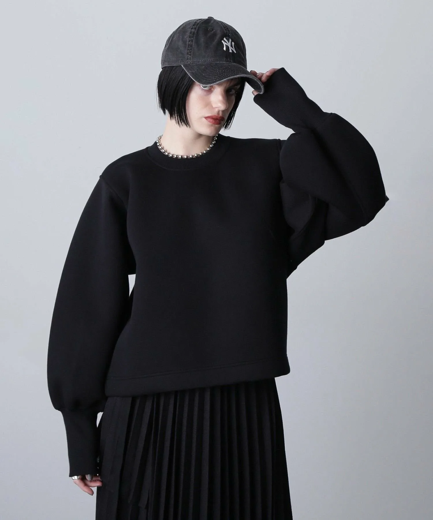 Дизайнерский топ, изготовленный из тщательно отобранного трикотажного материала двойной вязки, создающего уникальный силуэт, характерный для mici.