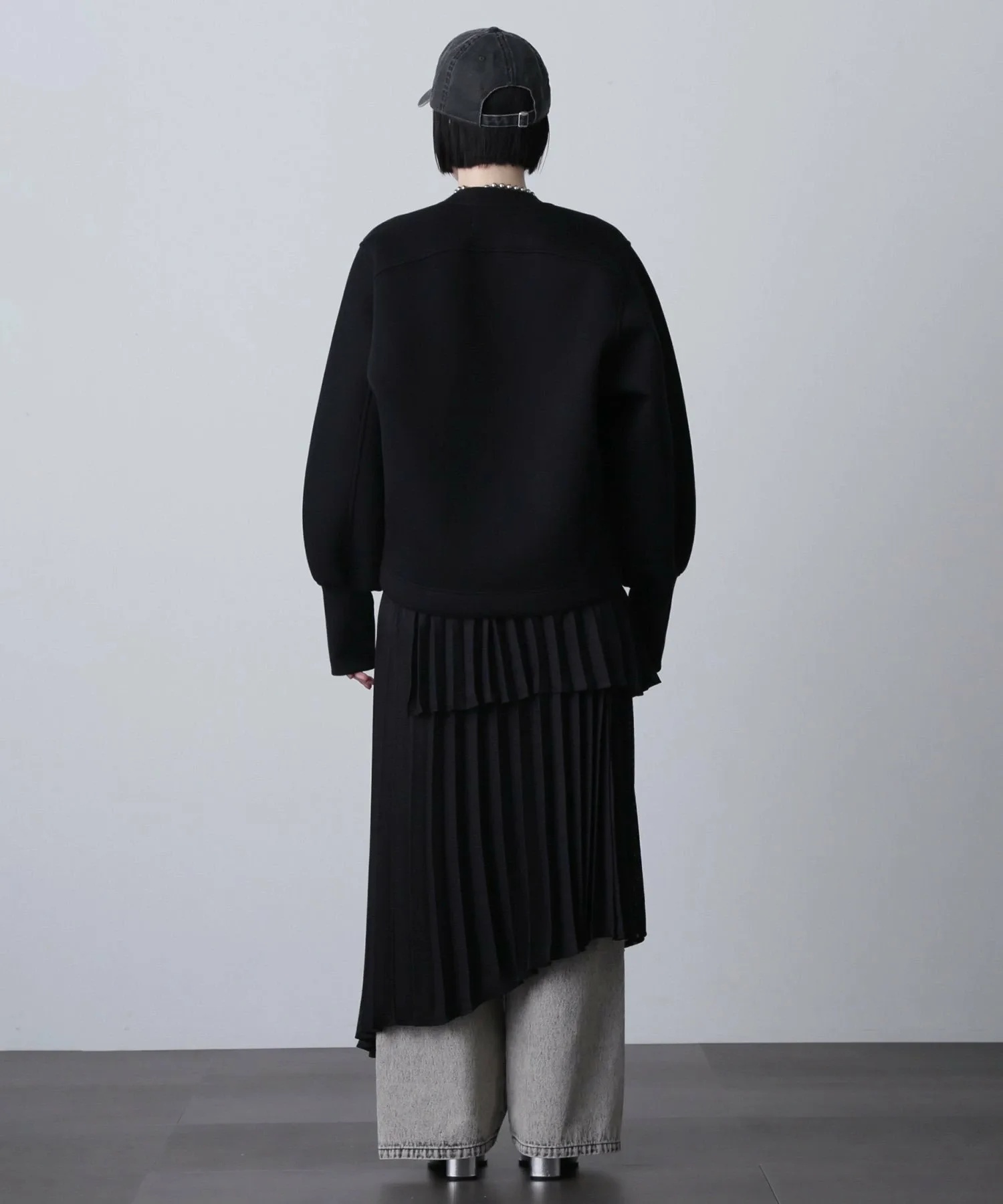 - Трикотажный материал двойной вязки, обработанный на специальной жаккардовой машине для беспрецедентной плотности, пышности и объемности.
