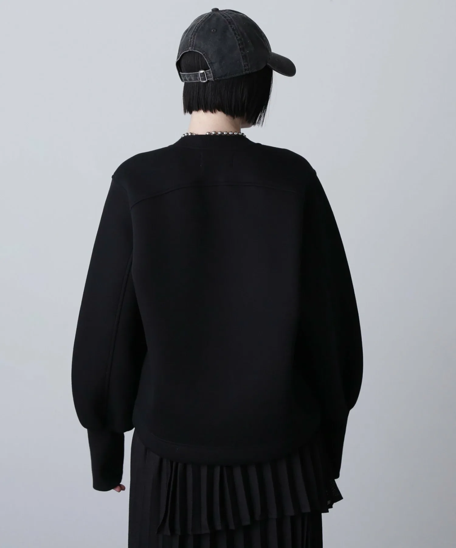 Дизайнерский топ, изготовленный из тщательно отобранного трикотажного материала двойной вязки, создающего уникальный силуэт, характерный для mici.