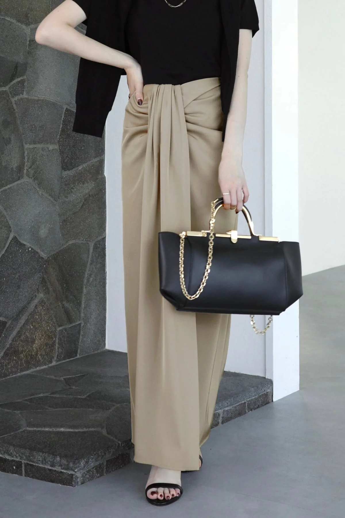 Эта юбка с ниспадающей драпировкой создает прекрасный образ при каждом движении.