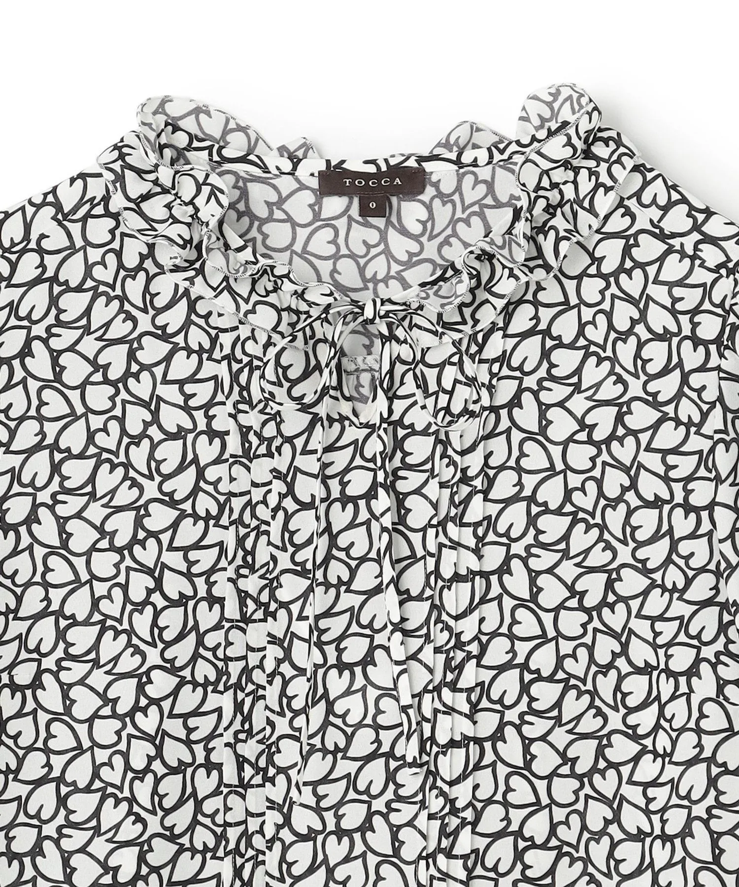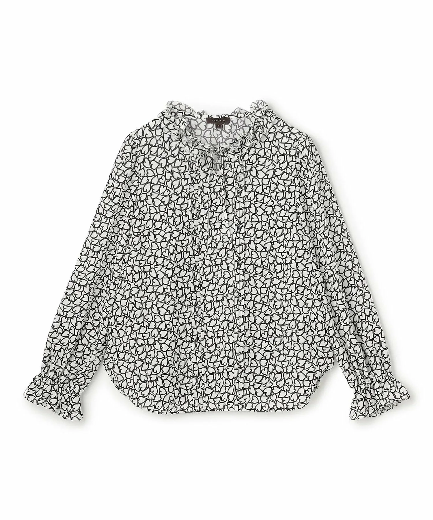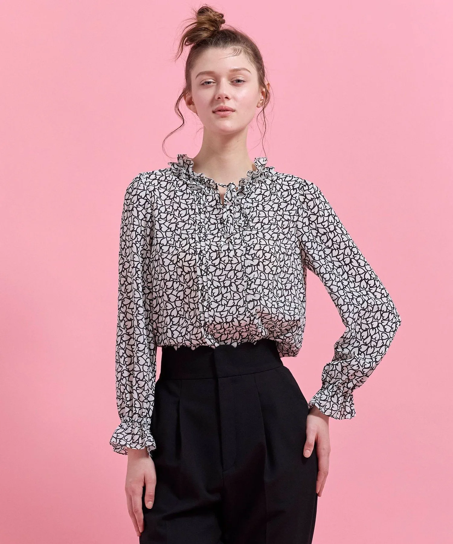 Эта великолепная блузка украшена привлекательным принтом в виде сердечек, геометрически соединенных цепочкой, и узором в виде сердечек, имеющим вечное значение.