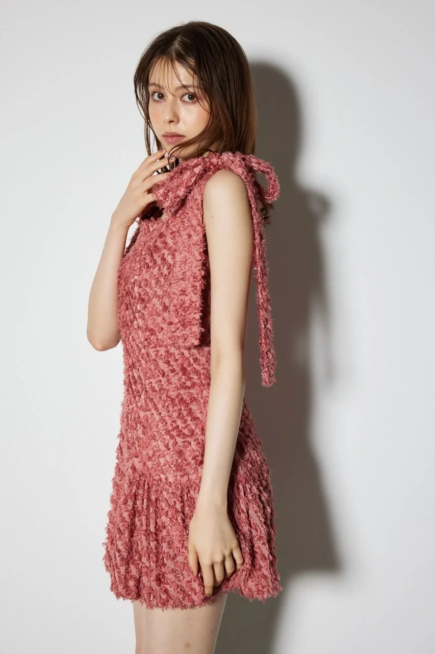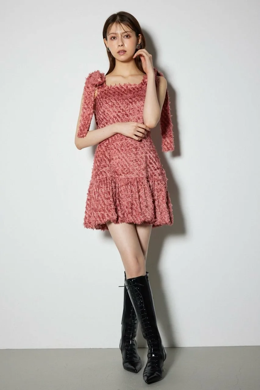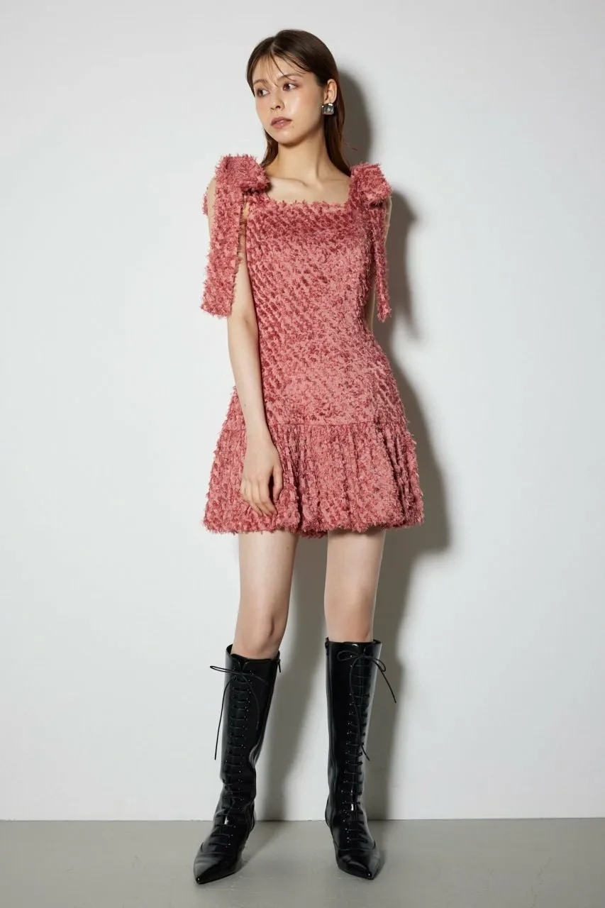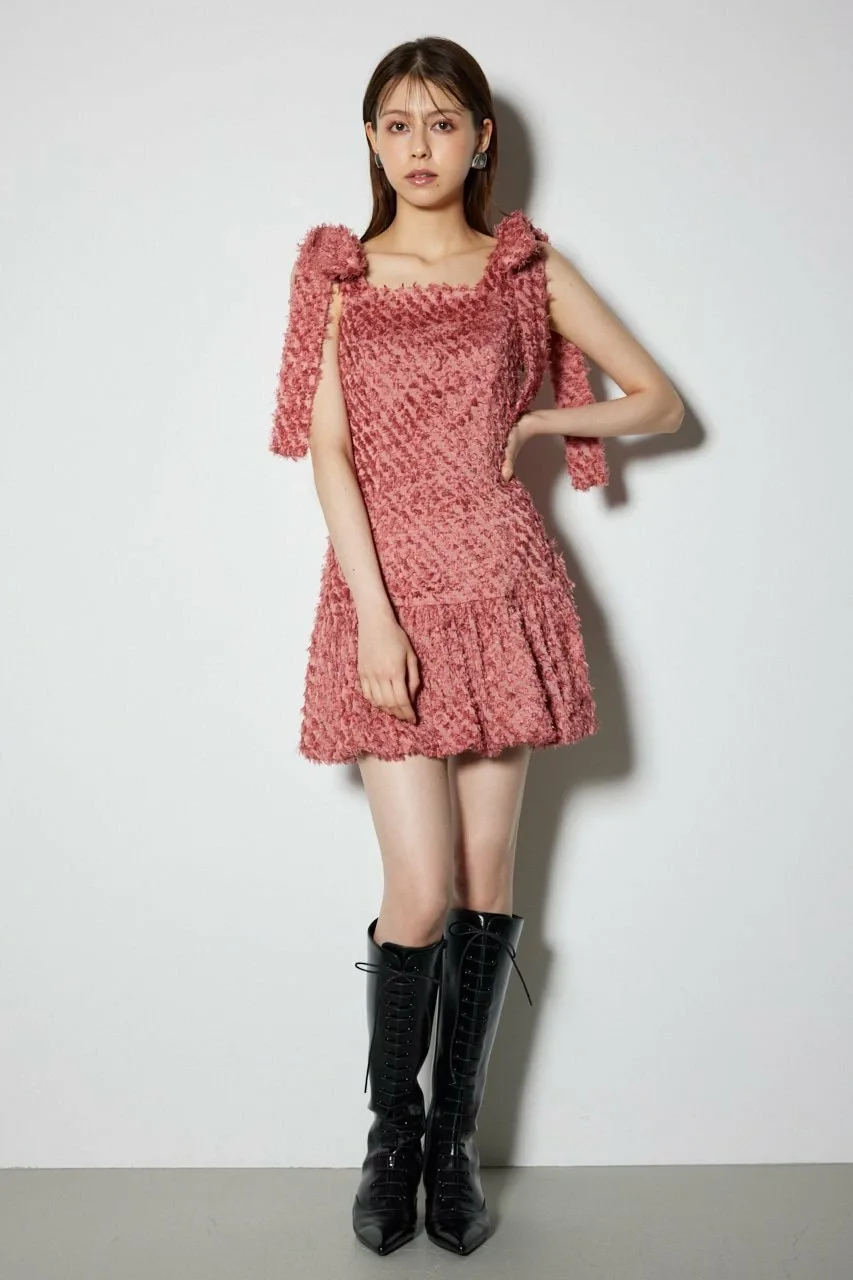 Мини-платье с модной широкой лентой на плече в качестве изюминки.