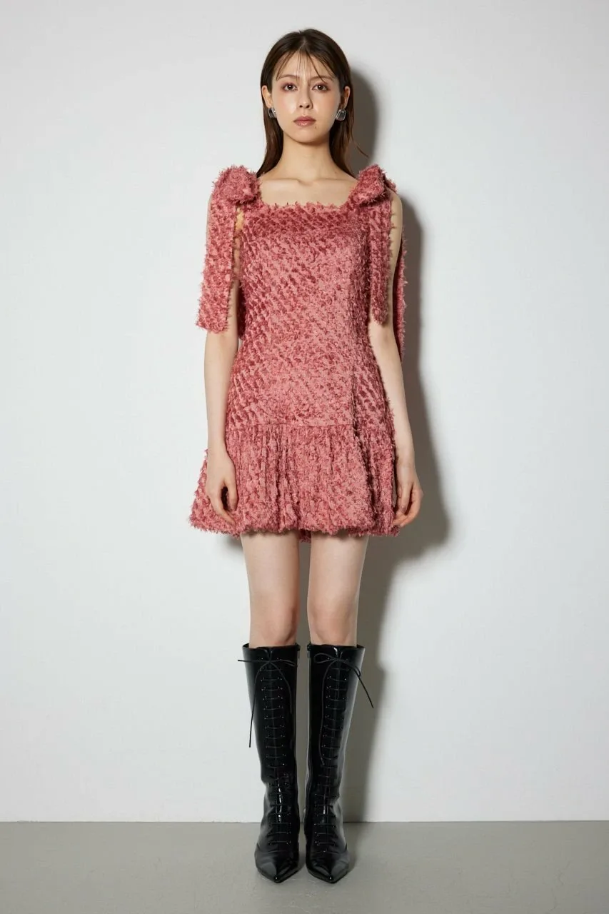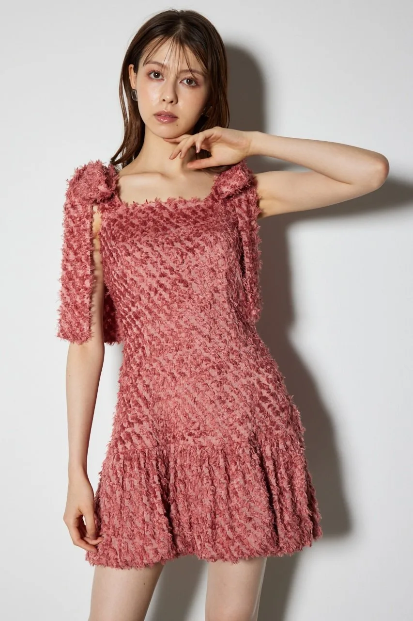 Благодаря использованию объемной ткани, платье выглядит гламурно, но не слишком нарядно.