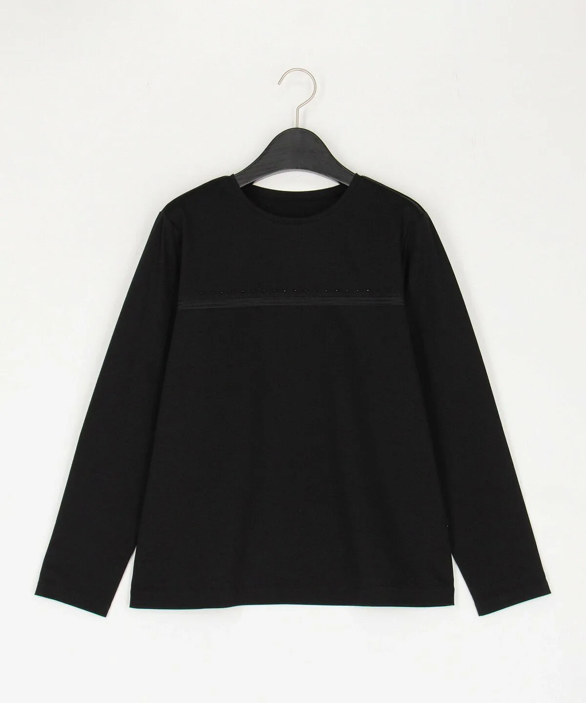 Этот пуловер с длинными рукавами и круглым вырезом украшен тесьмой и ручной вышивкой бисером на груди.