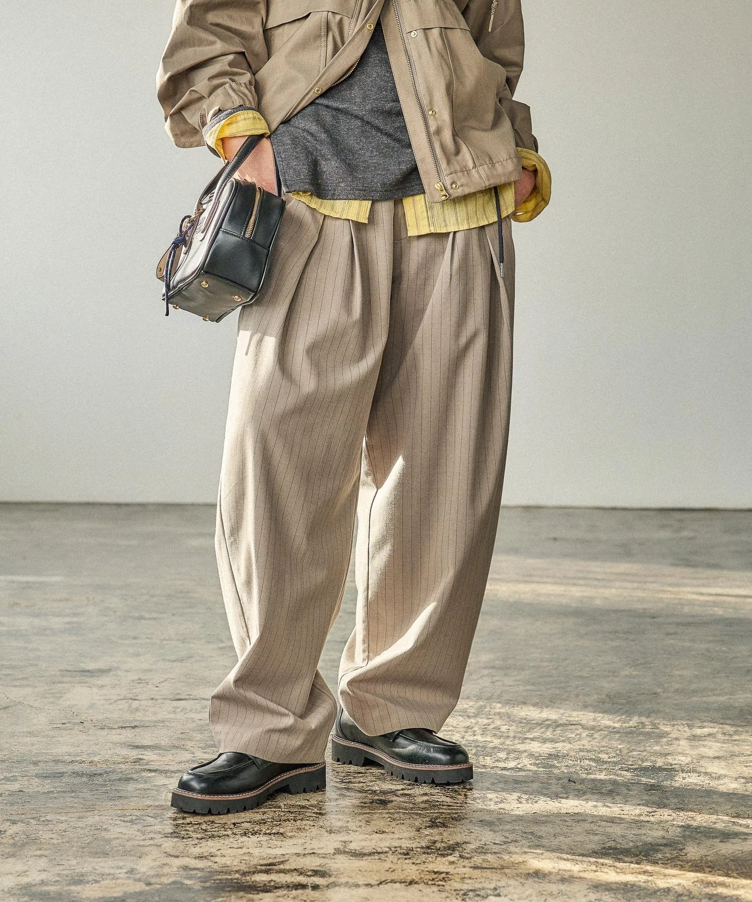 Брюки-бочонки с дизайнерскими многослойными складками.