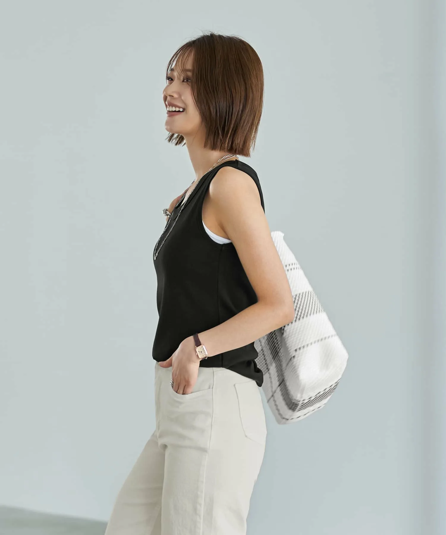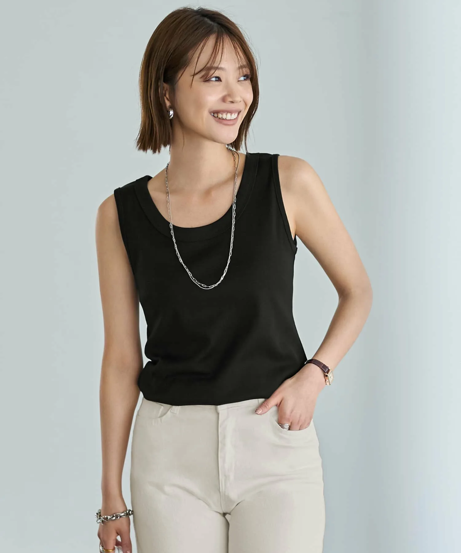 Мы добавили декоративную окантовку по краям пройм, чтобы создать майку с идеальным сочетанием дизайна. Мы тщательно подобрали толщину и угол с точностью до миллиметра, чтобы добиться идеального баланса. Изысканность японских тканей обеспечивает общий вид, который не выглядит слишком повседневным. Дизайн также гарантирует, что нижнее белье не будет видно в области плеч или подмышек.