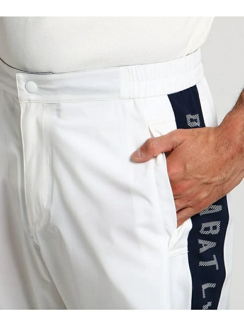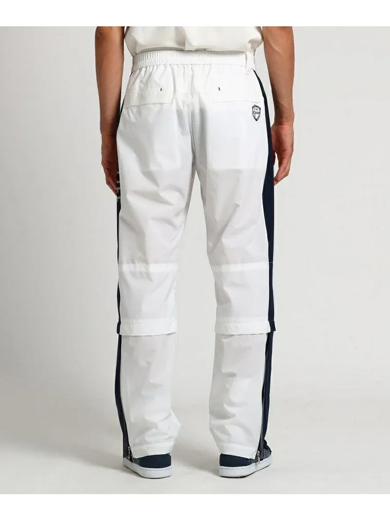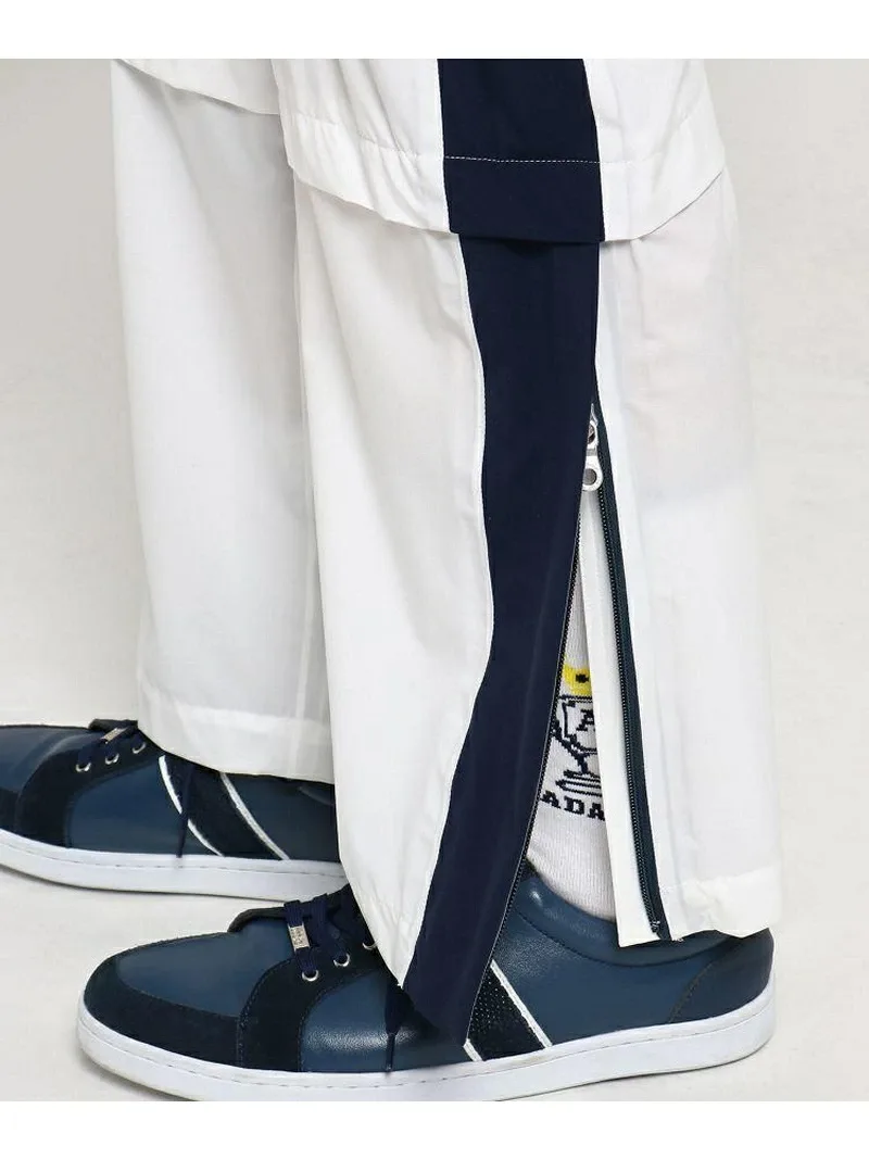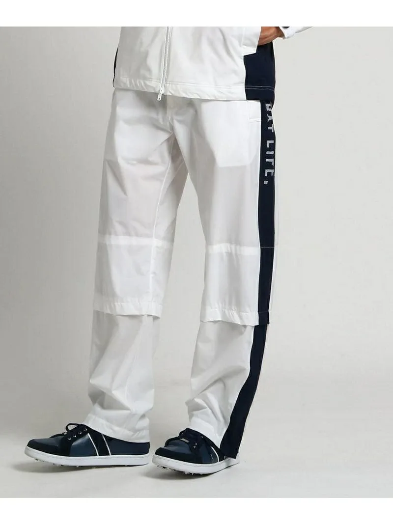 Эти дождевые брюки выполнены в двухцветном дизайне. Их дизайн позволяет сочетать их с самыми разными нарядами. Они изготовлены из функционального материала с высокой водостойкостью и воздухопроницаемостью. Мягкая текстура и эластичность позволяют играть в гольф в дождливые дни без лишних хлопот. Верхние боковые карманы и нижние швы на коленях имеют сетчатую вентиляцию для воздухопроницаемости. Длина также регулируется с помощью шнурка в нижнем шве на коленях, поэтому вы можете носить их, не укорачивая. Нижний край брюк можно широко расстегнуть и застегнуть на молнию, поэтому вы можете надевать и снимать брюки, не снимая мокрую обувь. *Этот товар был сфотографирован на образце. Обратите внимание, что дизайн и цветовая гамма могут немного отличаться от реального товара.