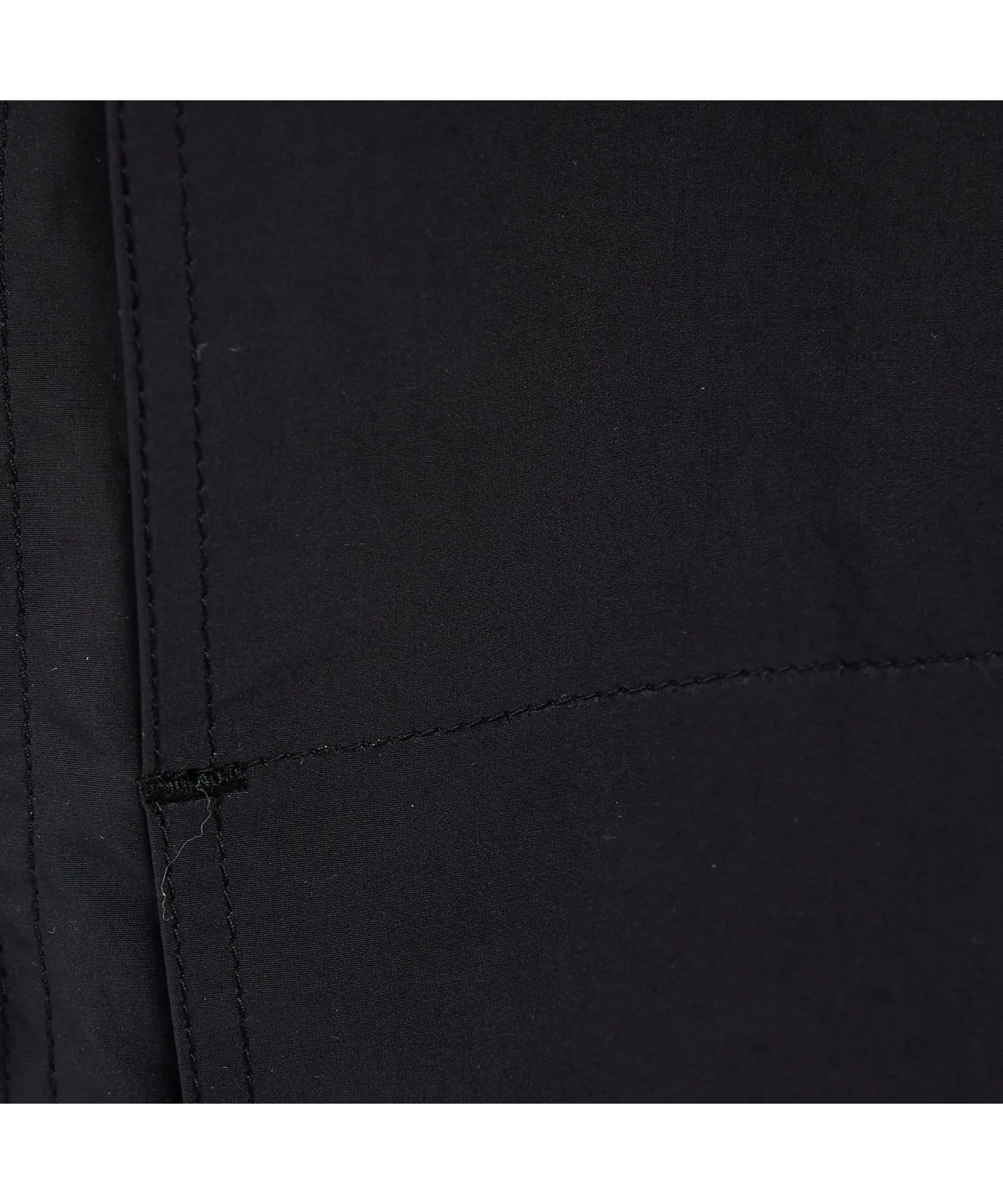Уточная нить изготовлена из «смешанной пряжи с различной усадкой», полученной из смеси волокон с разной температурой термоусадки. После процесса окрашивания материал приобретает техничность и умеренную драпировку. Он устойчив к деформации и имеет естественный вид.
