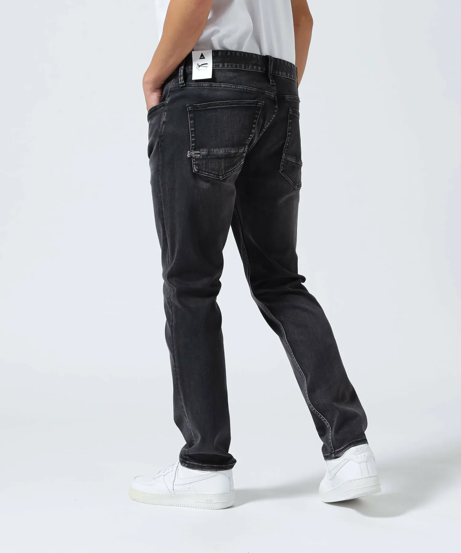 На заднем кармане красуется фирменный логотип бренда в виде ножниц.