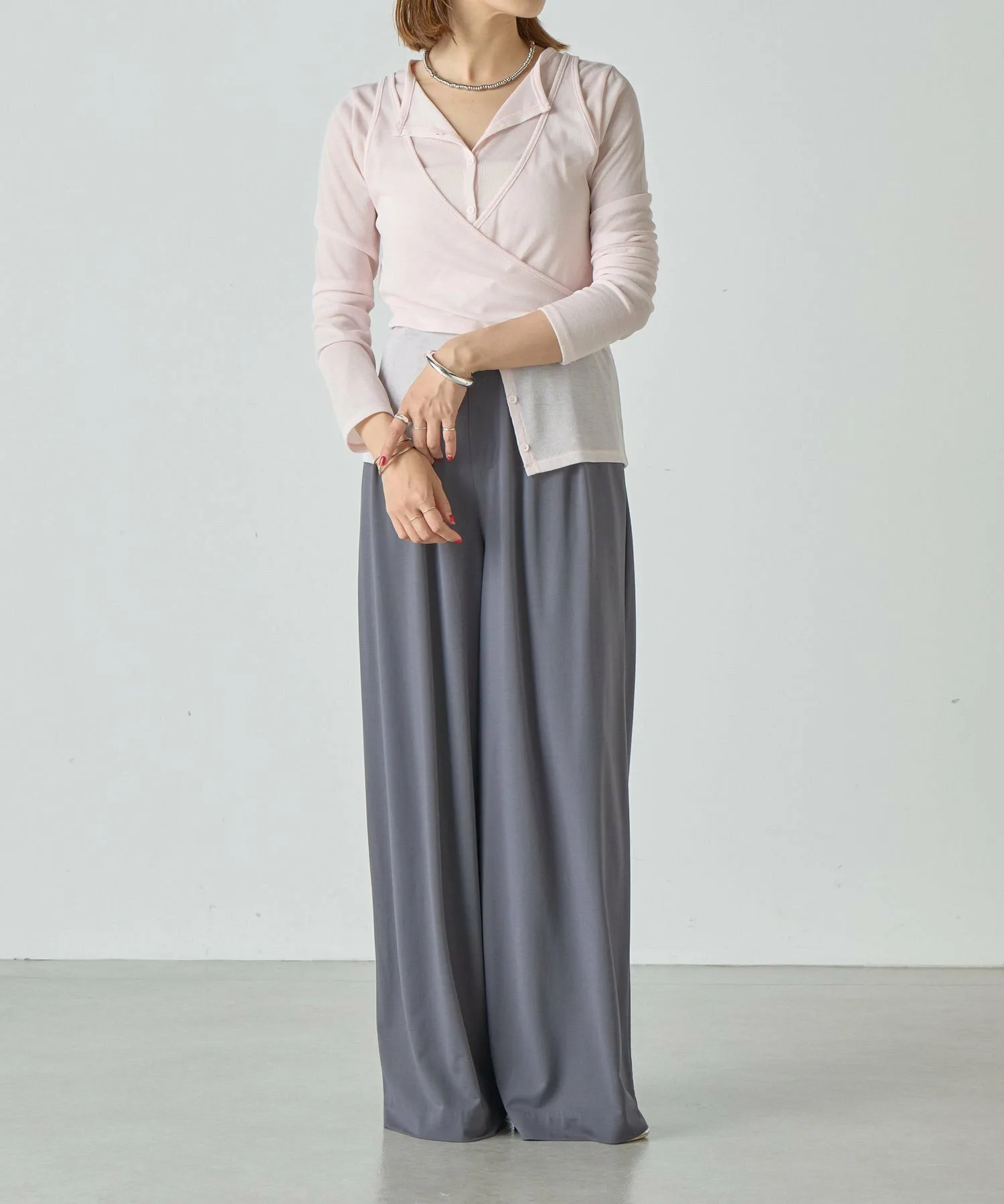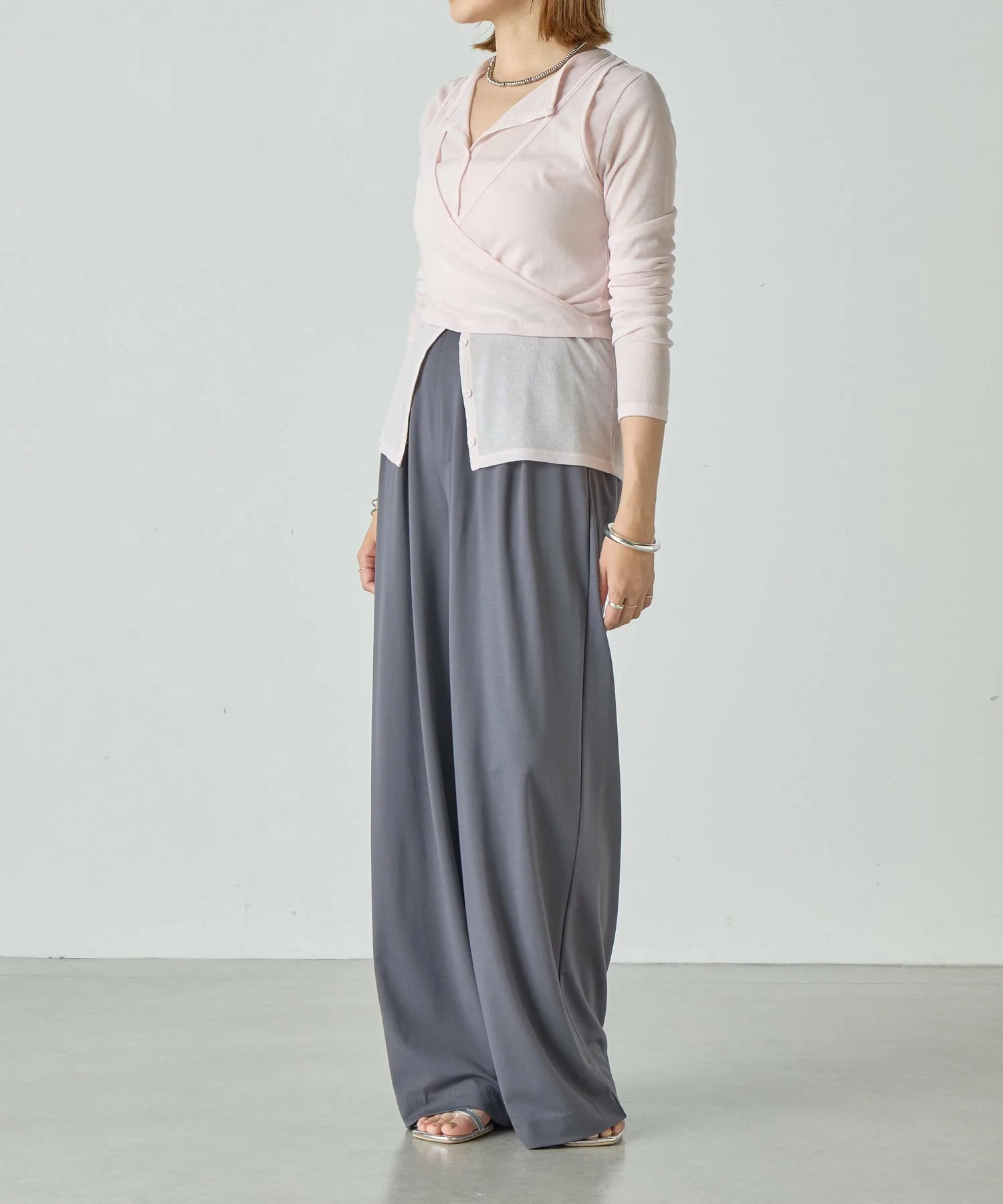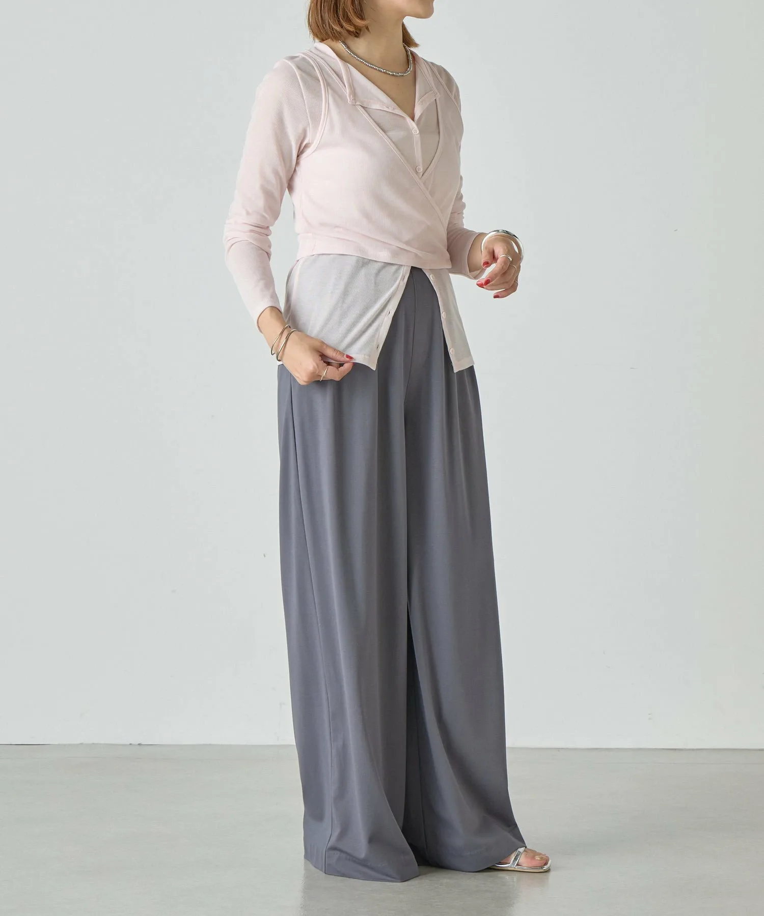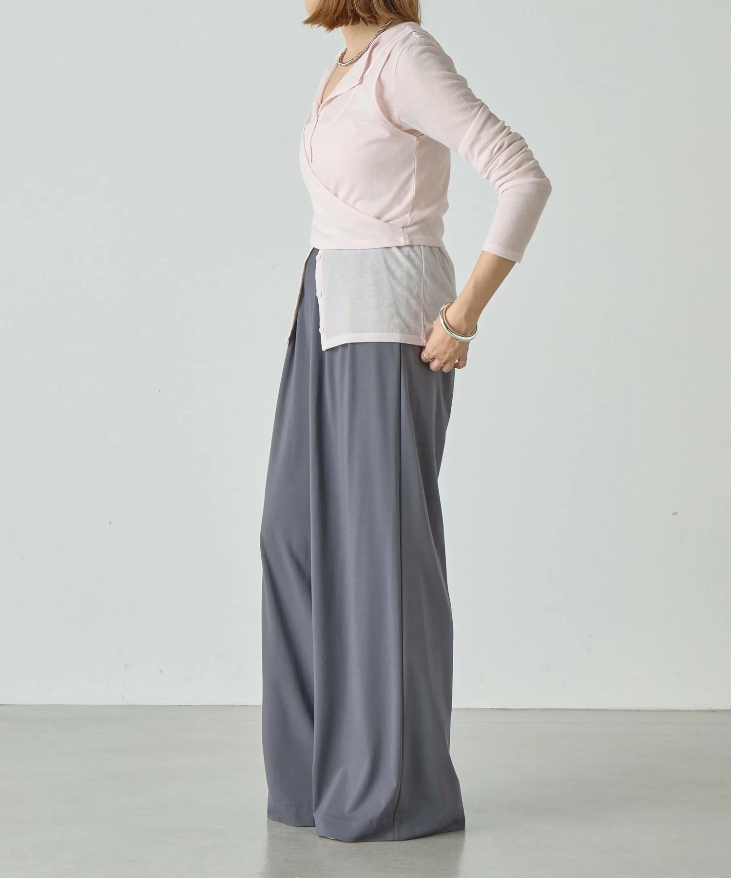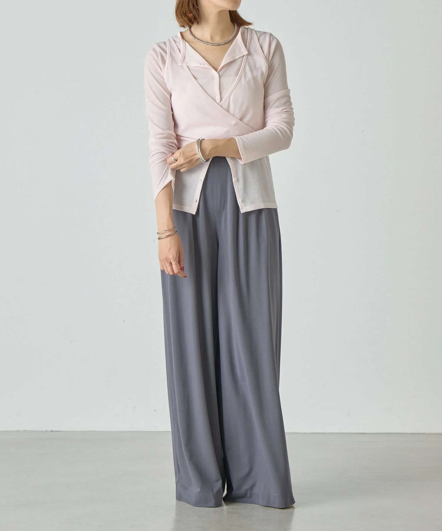 Слегка расстегнув пуговицы на кардигане,