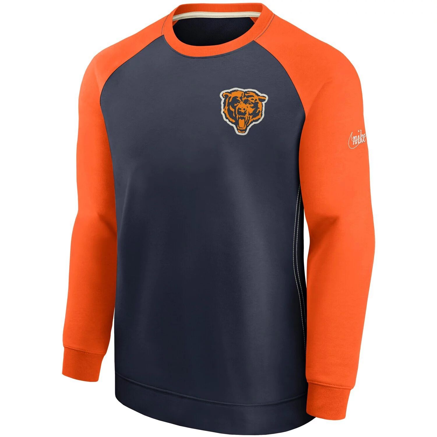 Мужской темно-синий/оранжевый свитер Chicago Bears Historic Raglan Crew Performance Nike