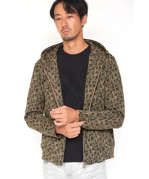 Визуально привлекательная толстовка на молнии с грубым узором, выполненная в двух цветовых решениях.