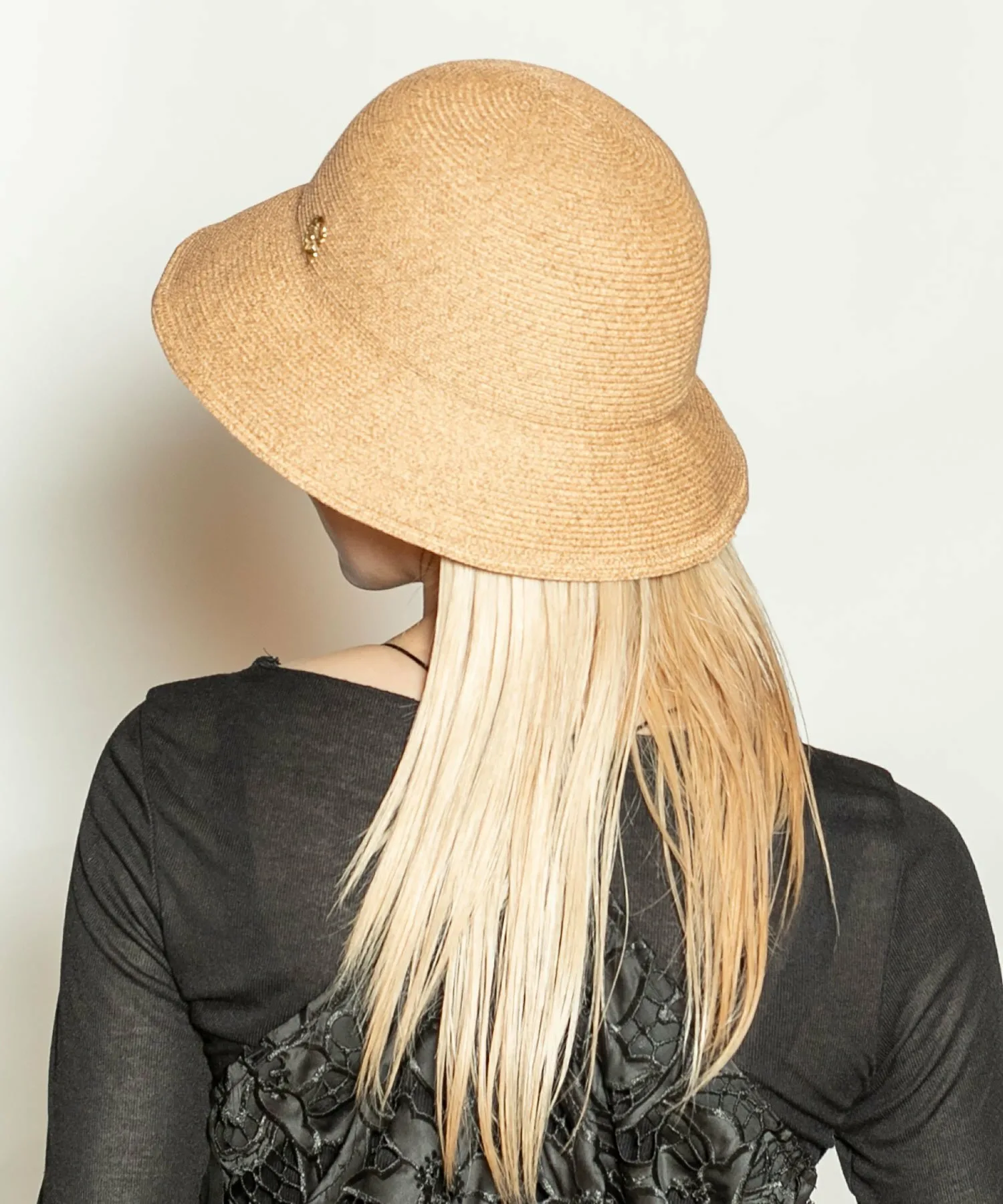 Закругленная тулья сочетается с длинными, плавно скошенными полями. Минималистичная форма облегчает надевание и обеспечивает удобную посадку.