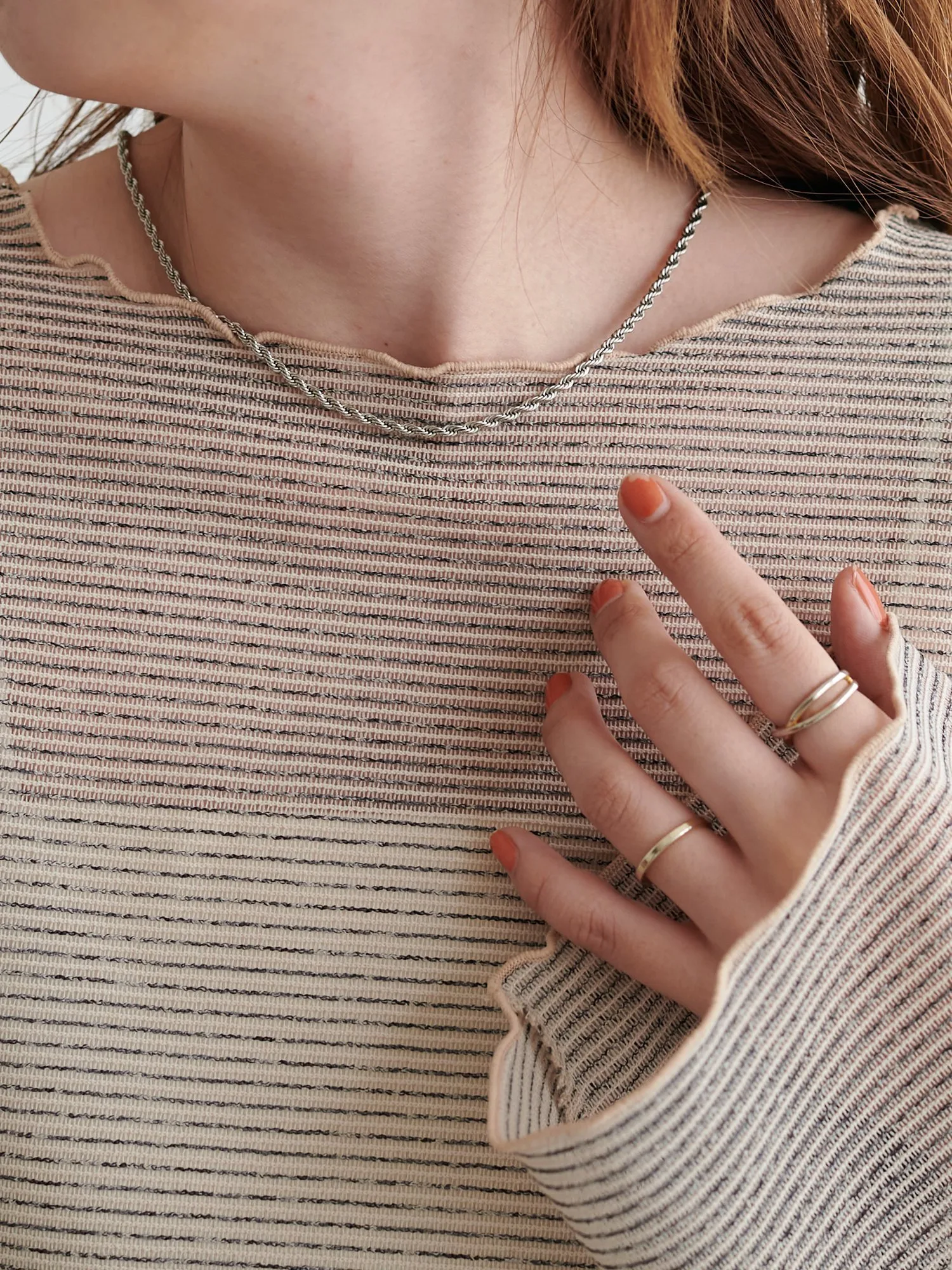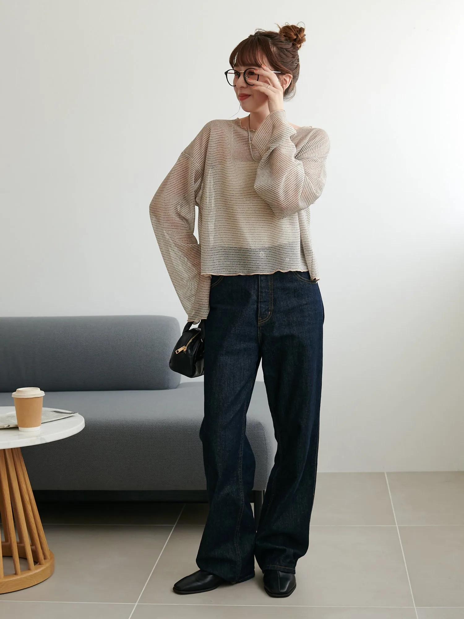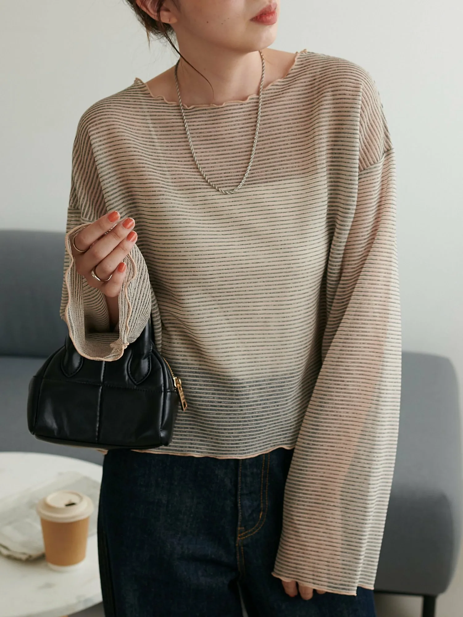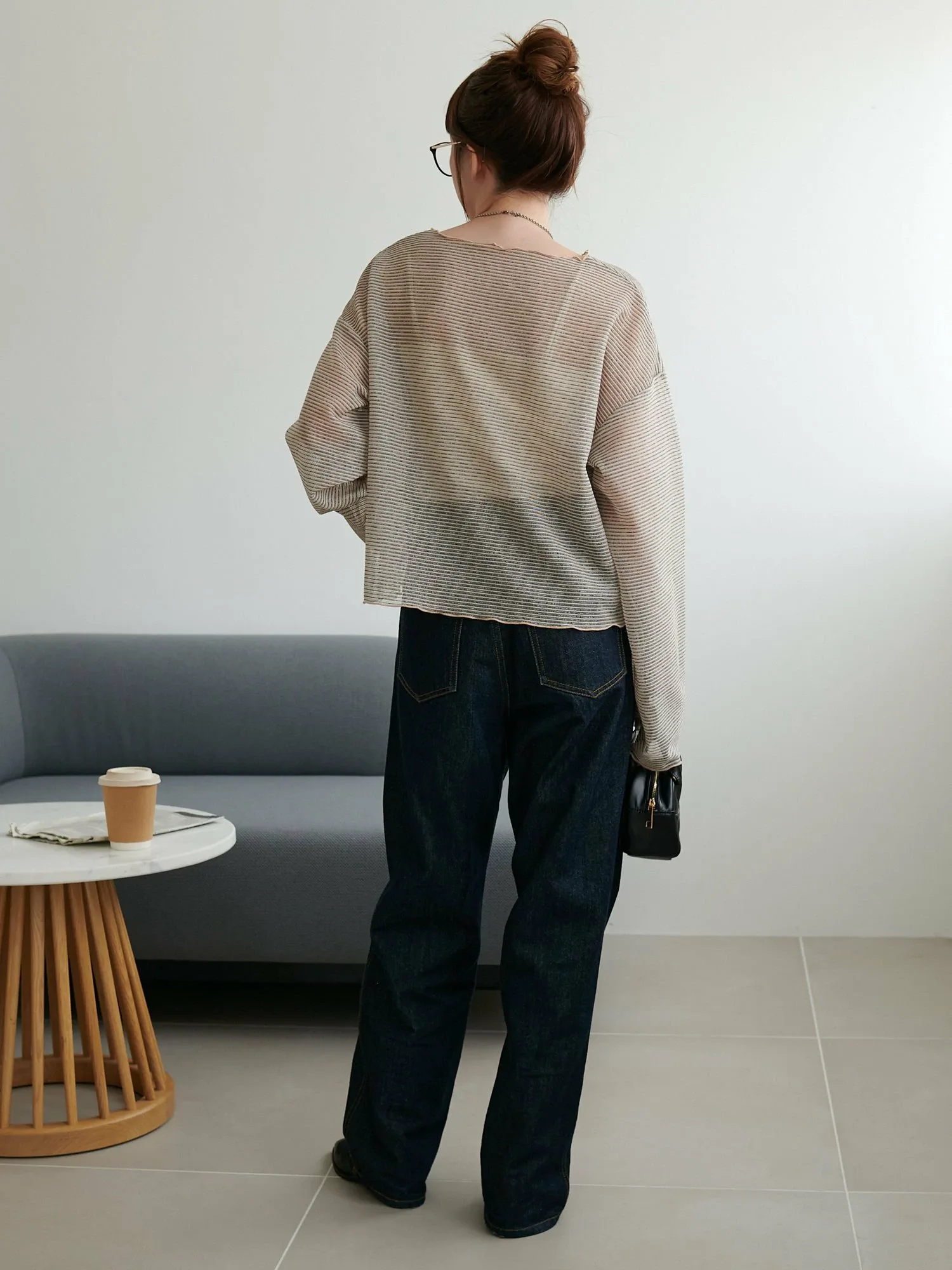 Сотрудники ростом 153 см: Эта вещь имеет тонкий край, который не выглядит слишком повседневным. Умеренная прозрачность создает здоровый, открытый для кожи образ♪