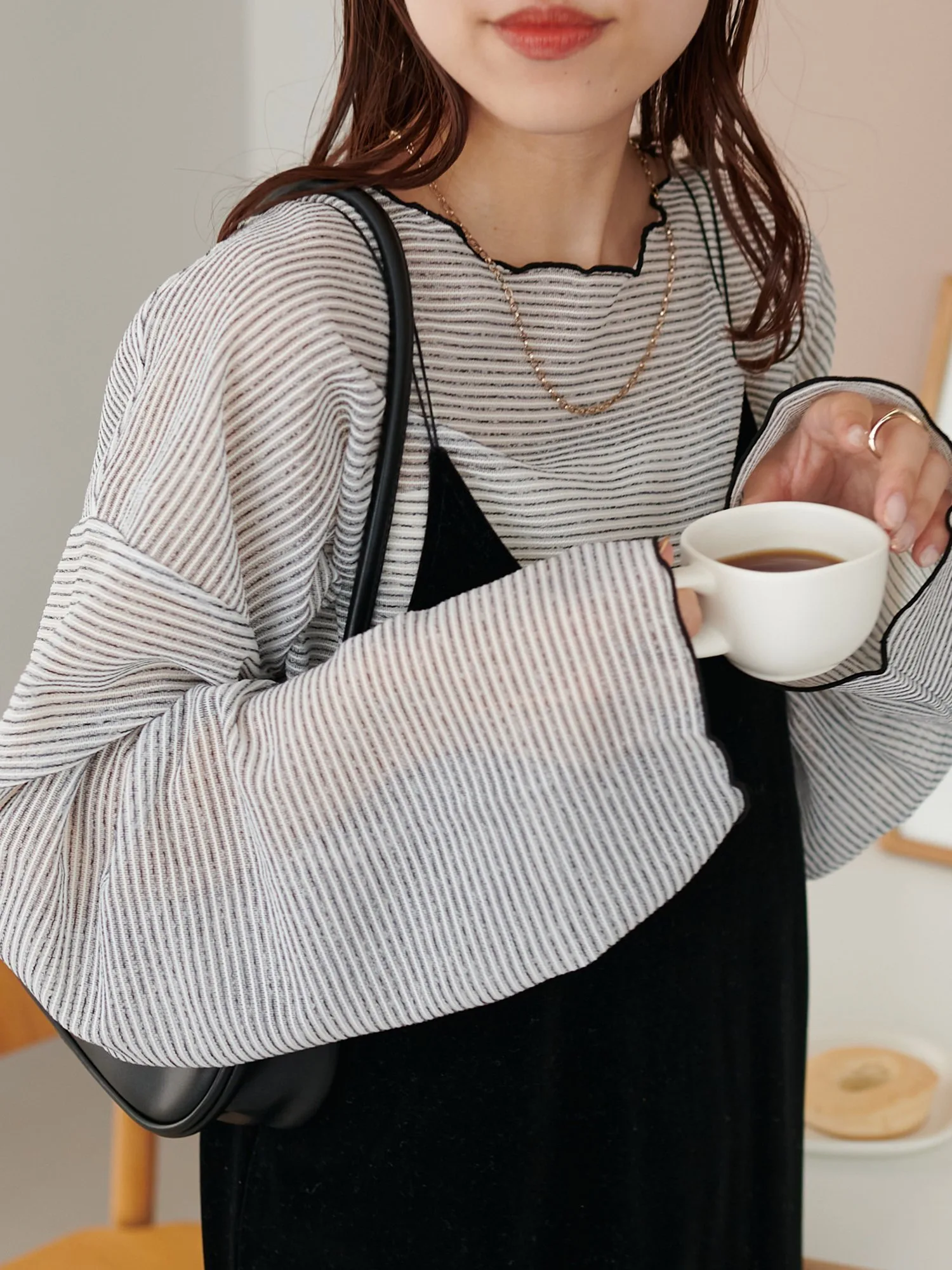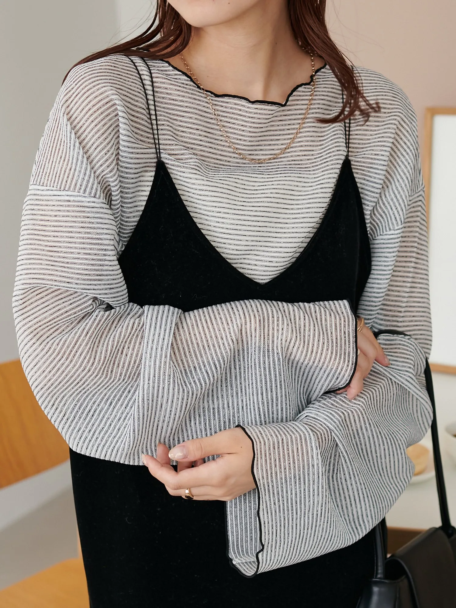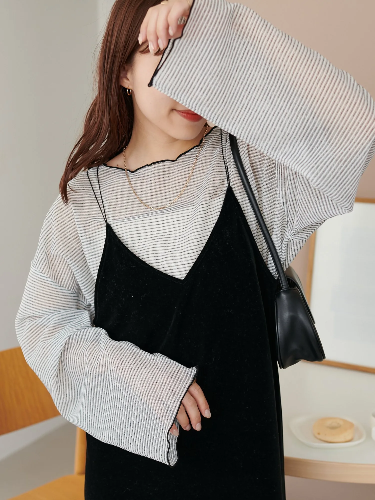 Сотрудники ростом 153 см: Эта вещь имеет тонкий край, который не выглядит слишком повседневным. Умеренная прозрачность создает здоровый, открытый для кожи образ♪