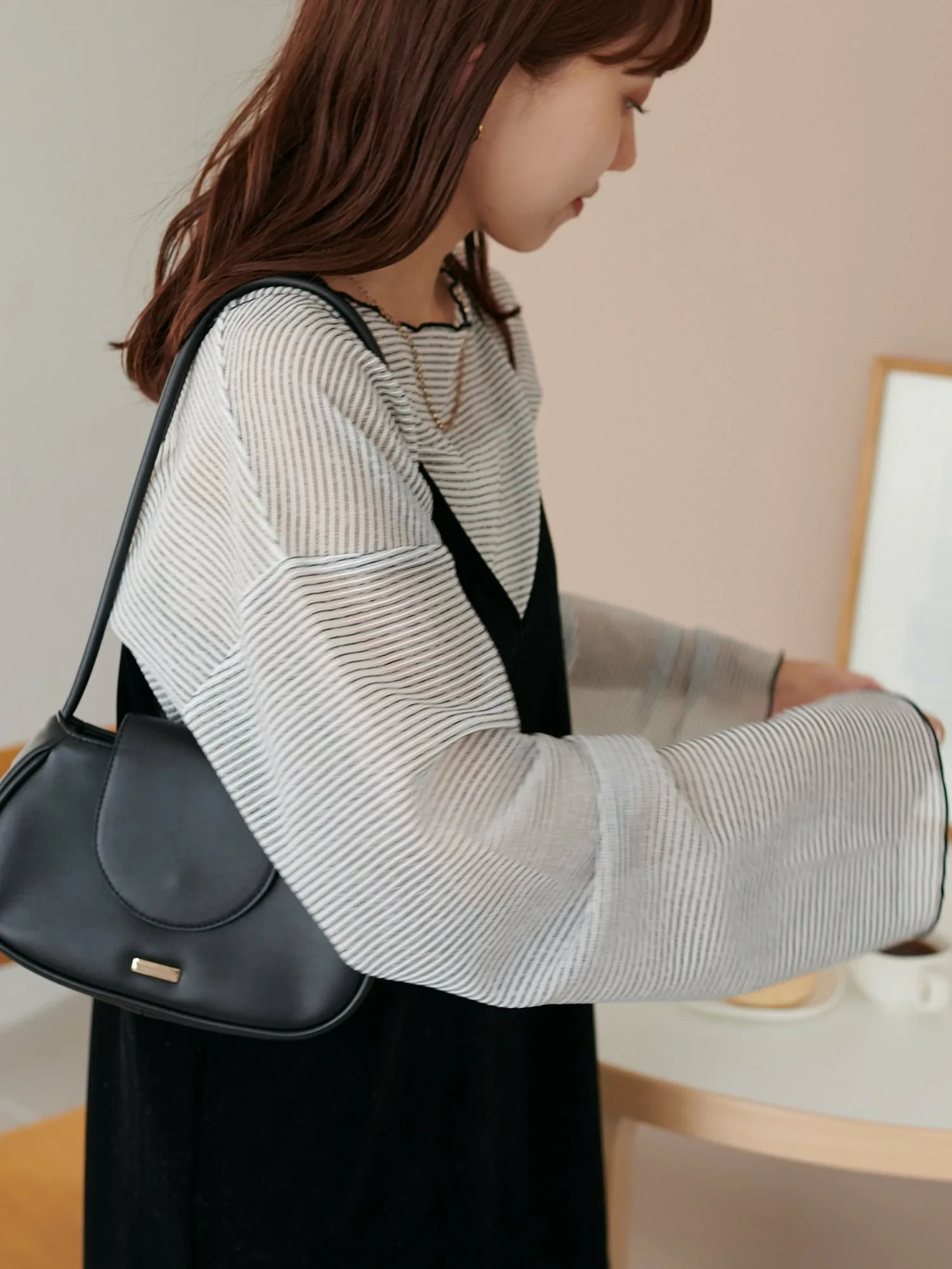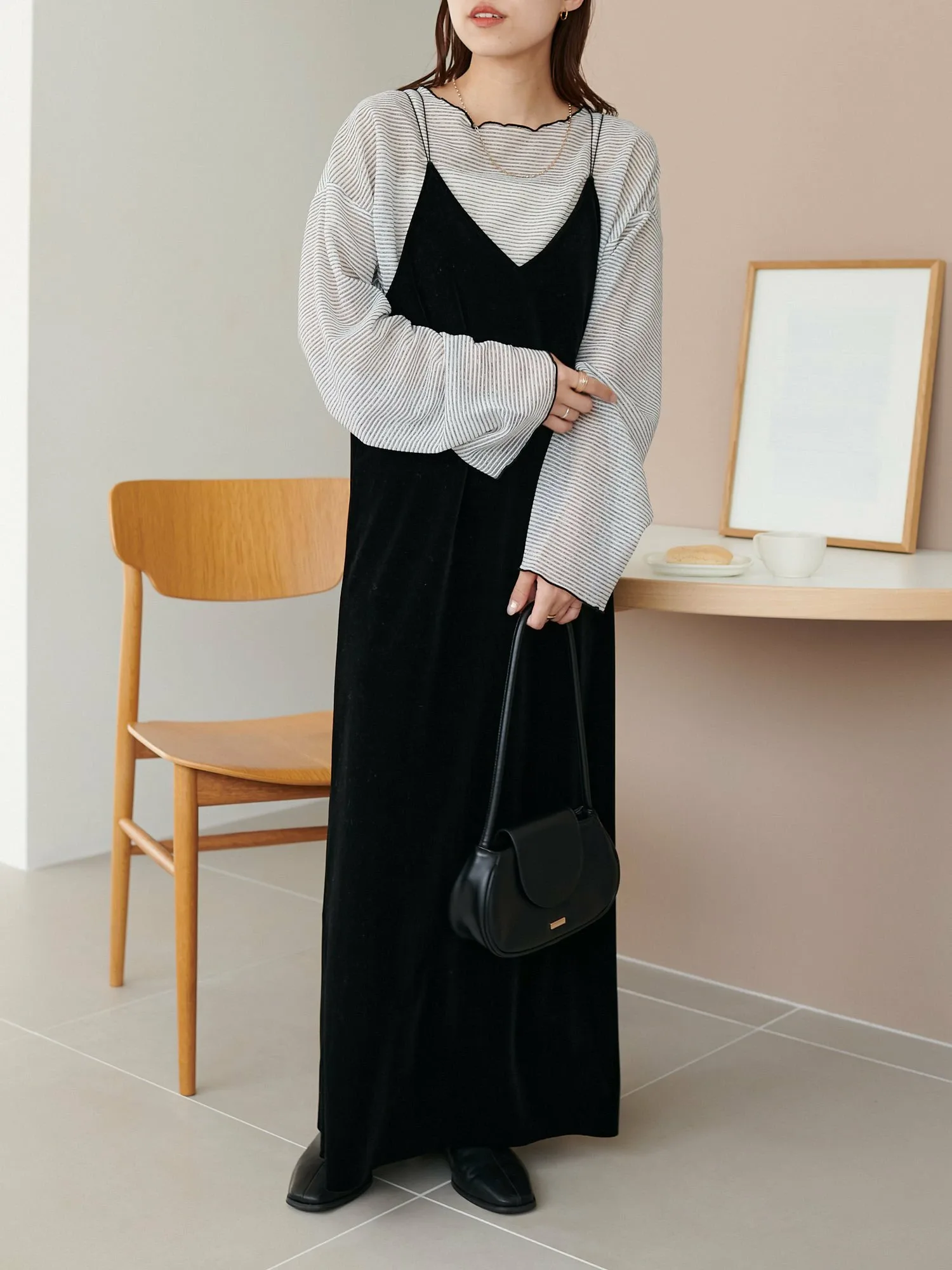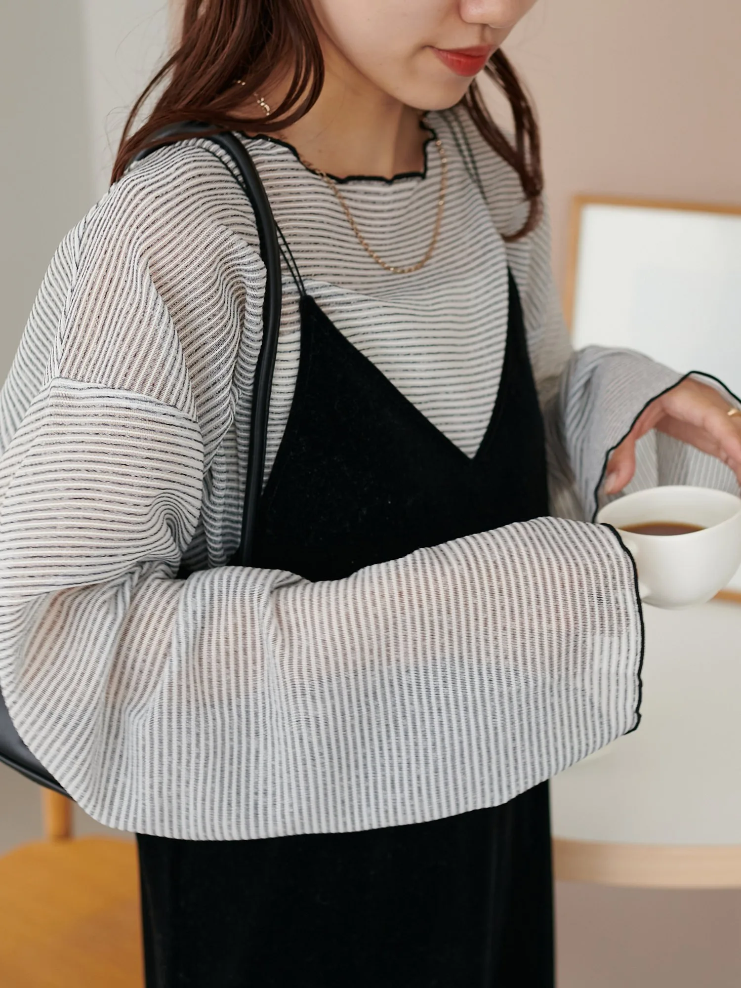Сотрудники ростом 153 см: Эта вещь имеет тонкий край, который не выглядит слишком повседневным. Умеренная прозрачность создает здоровый, открытый для кожи образ♪