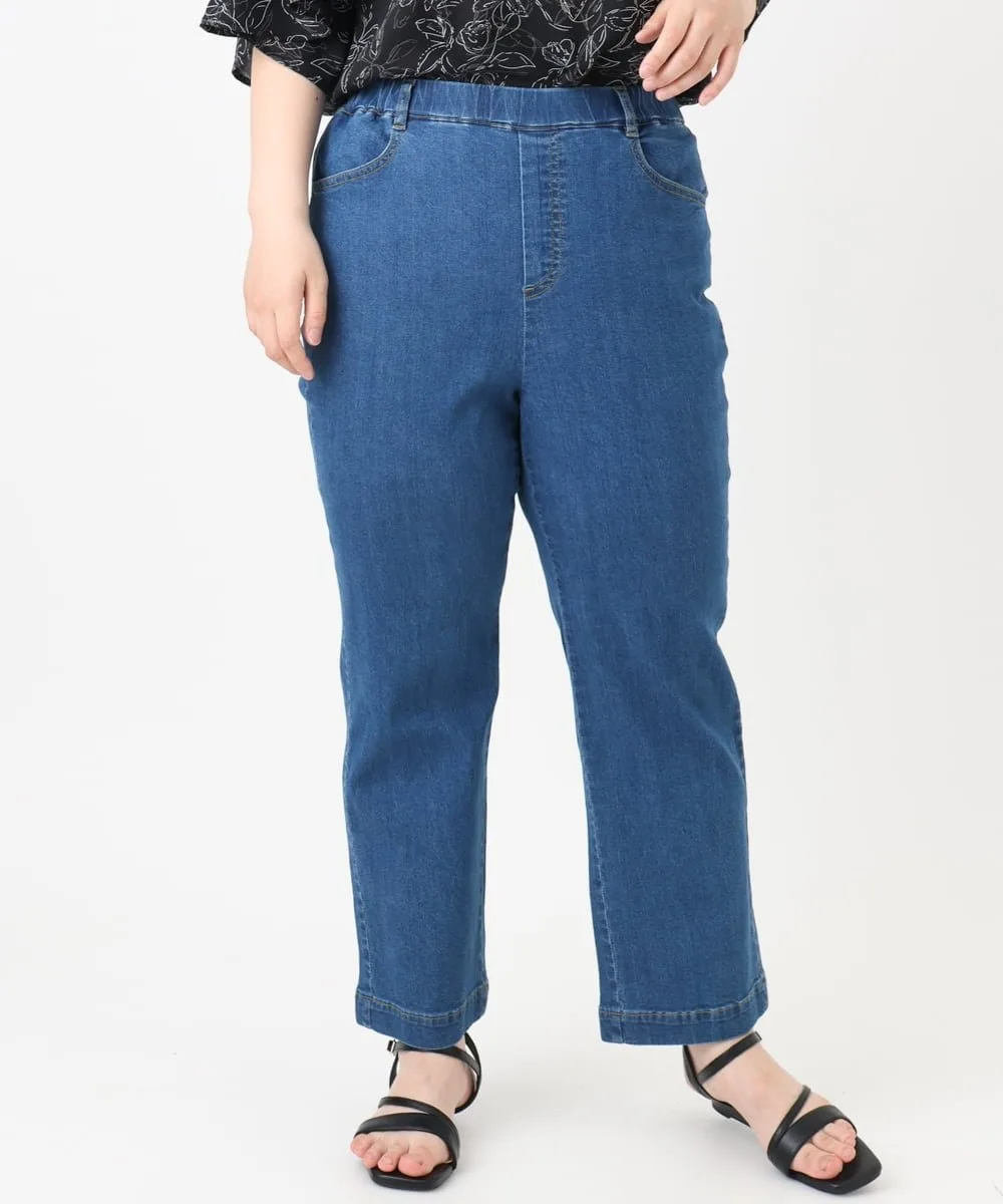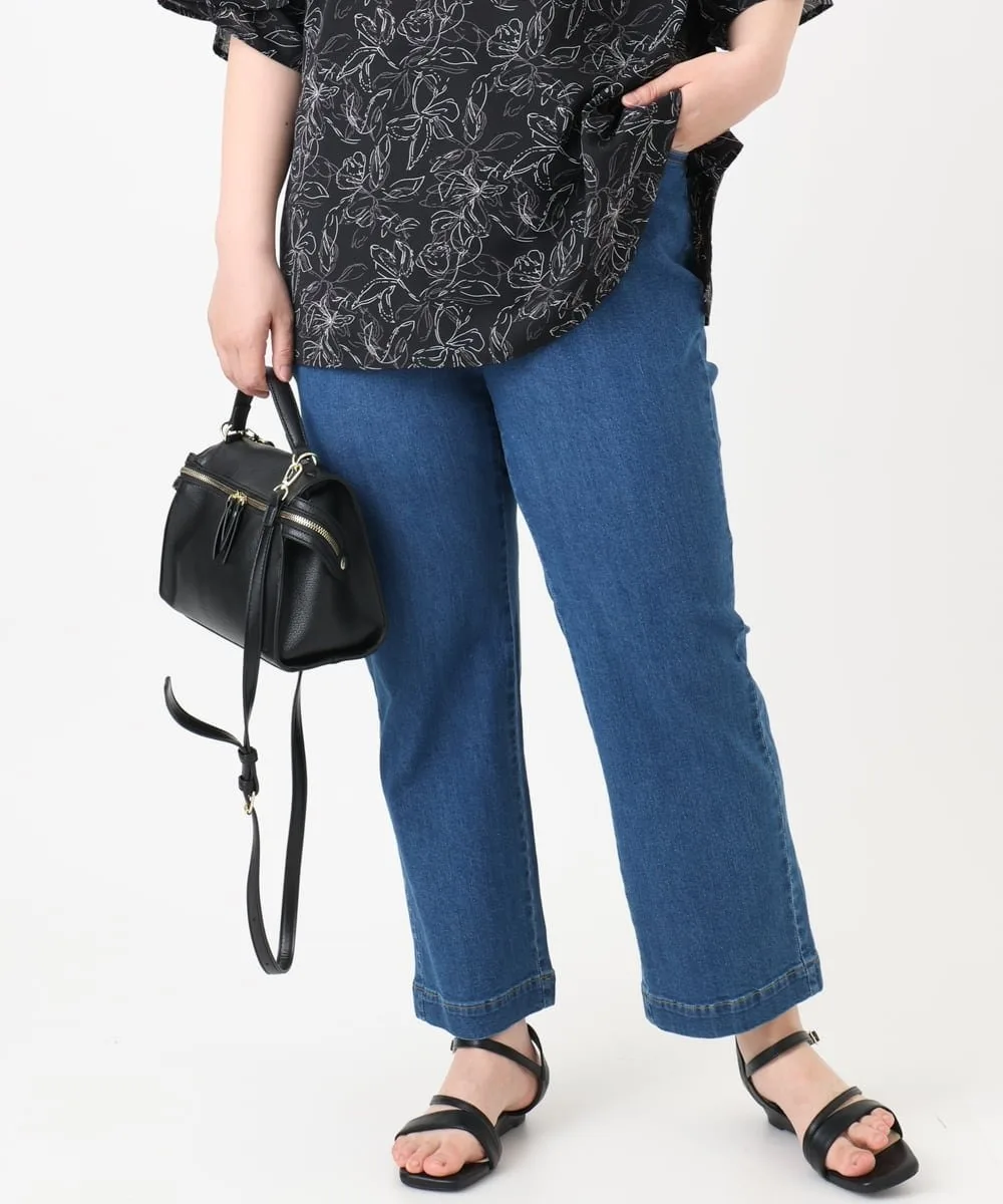 Джинсы свободного кроя с эластичной резинкой на талии.