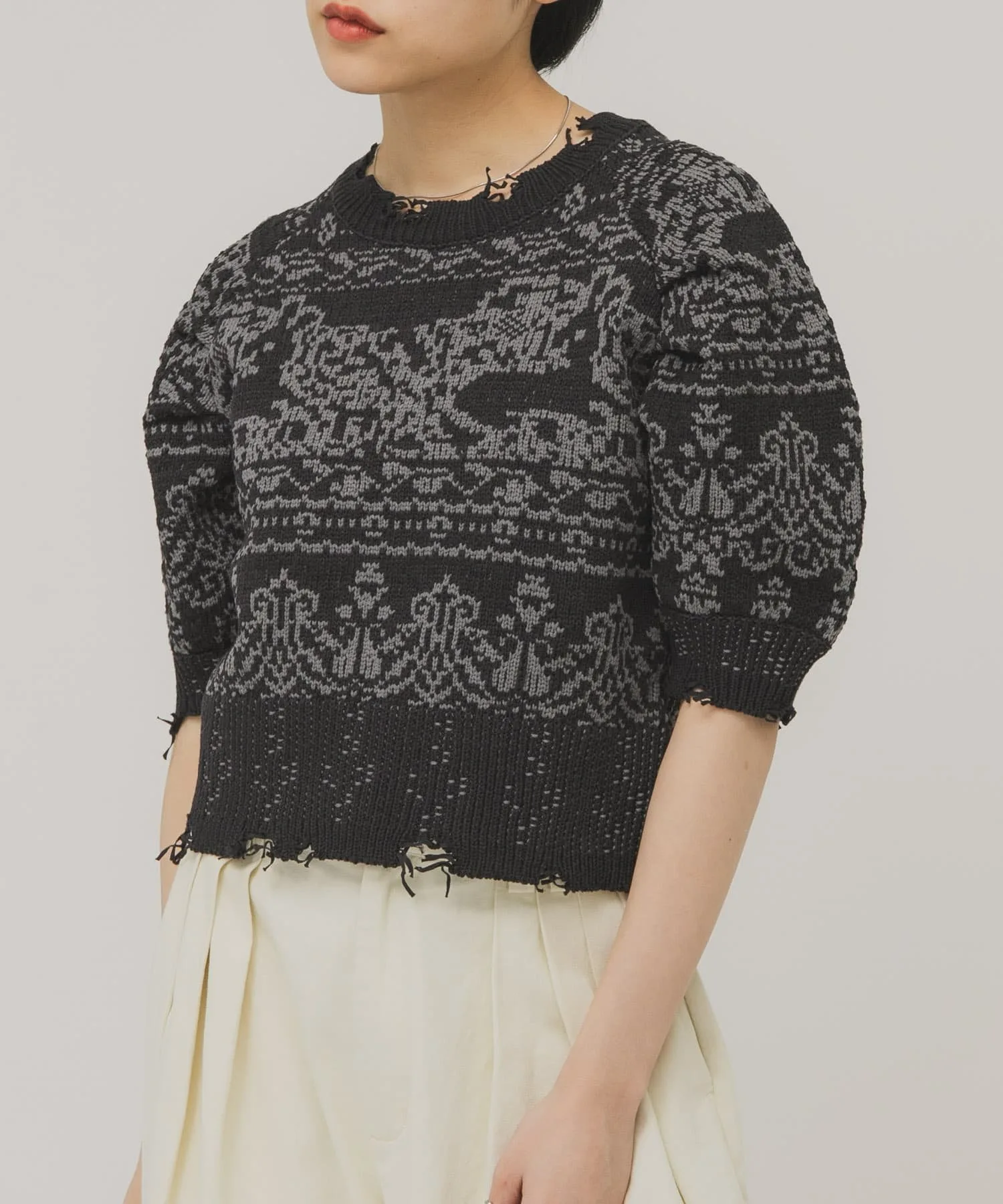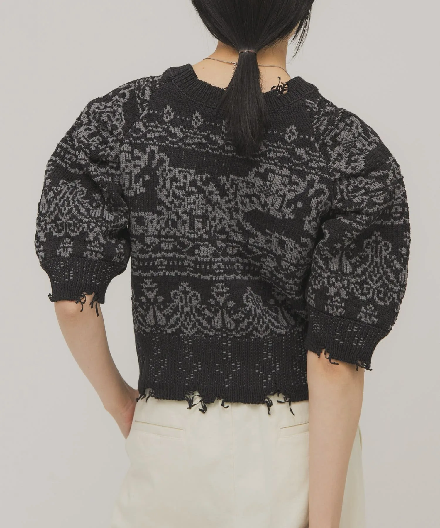 [Трикотажное изделие с эффектными объемными рукавами и жаккардовым узором]