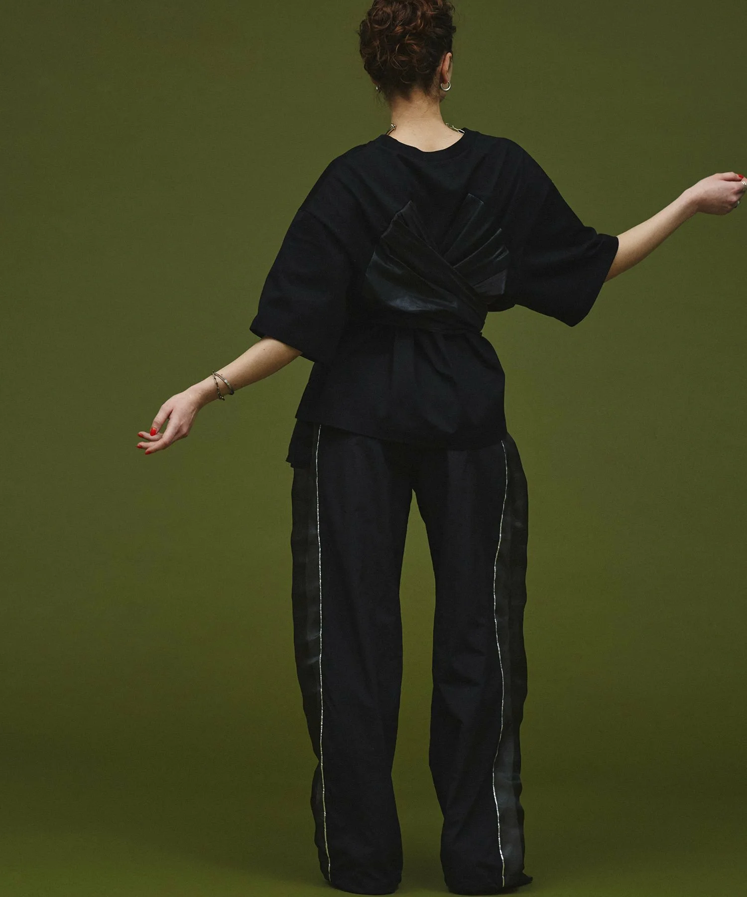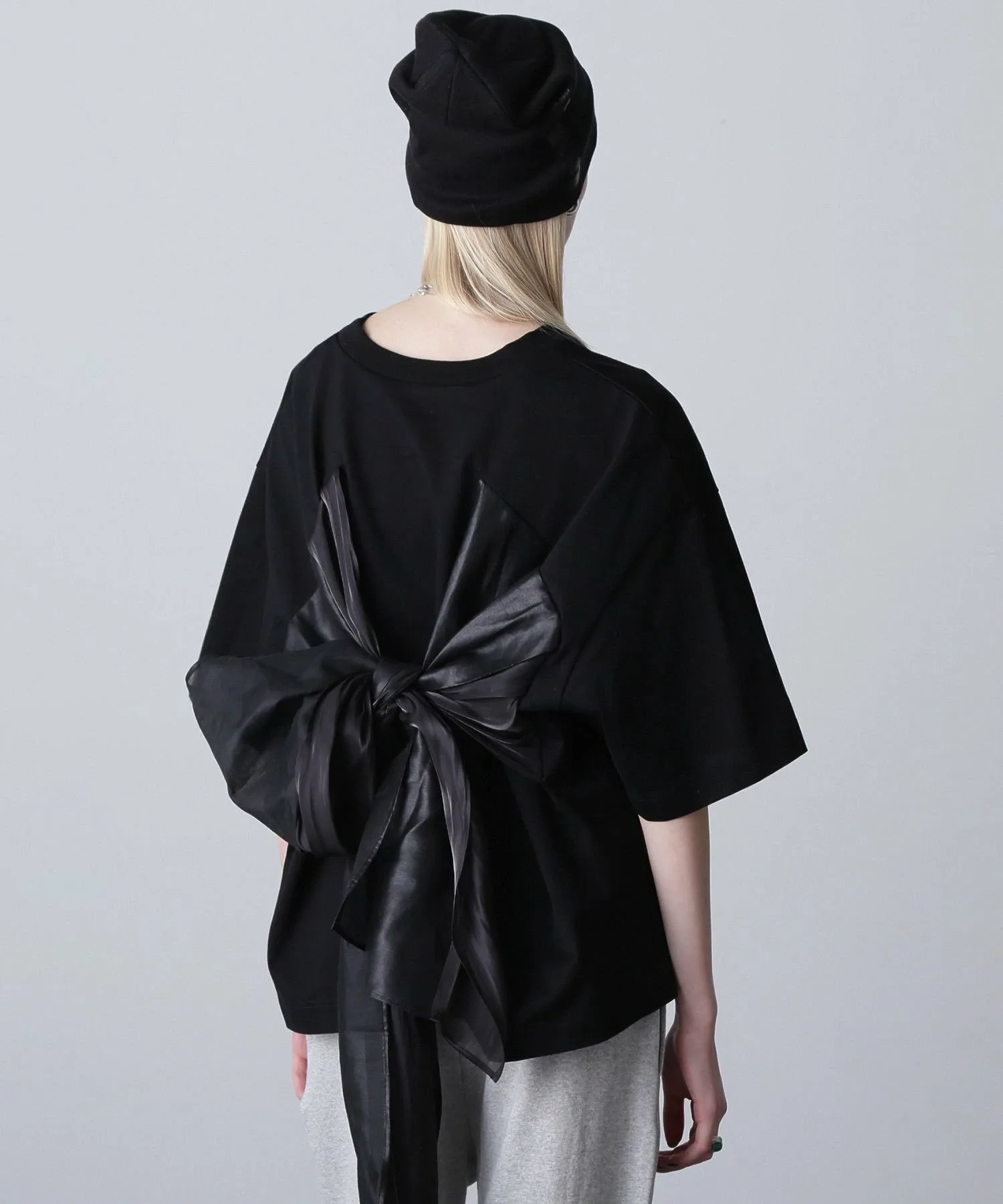 Хотя лента расположена сзади, основная часть имеет одинаковый дизайн спереди и сзади, поэтому ее можно носить спереди или сзади. Назад.
