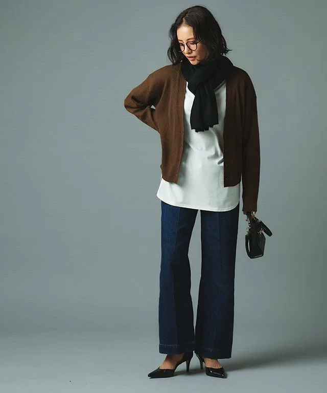 Умеренно плотный, прочный материал создает красивый силуэт. Ребристая вязка придает изделию уникальный вид. Шерстяная смесь добавляет тепла.