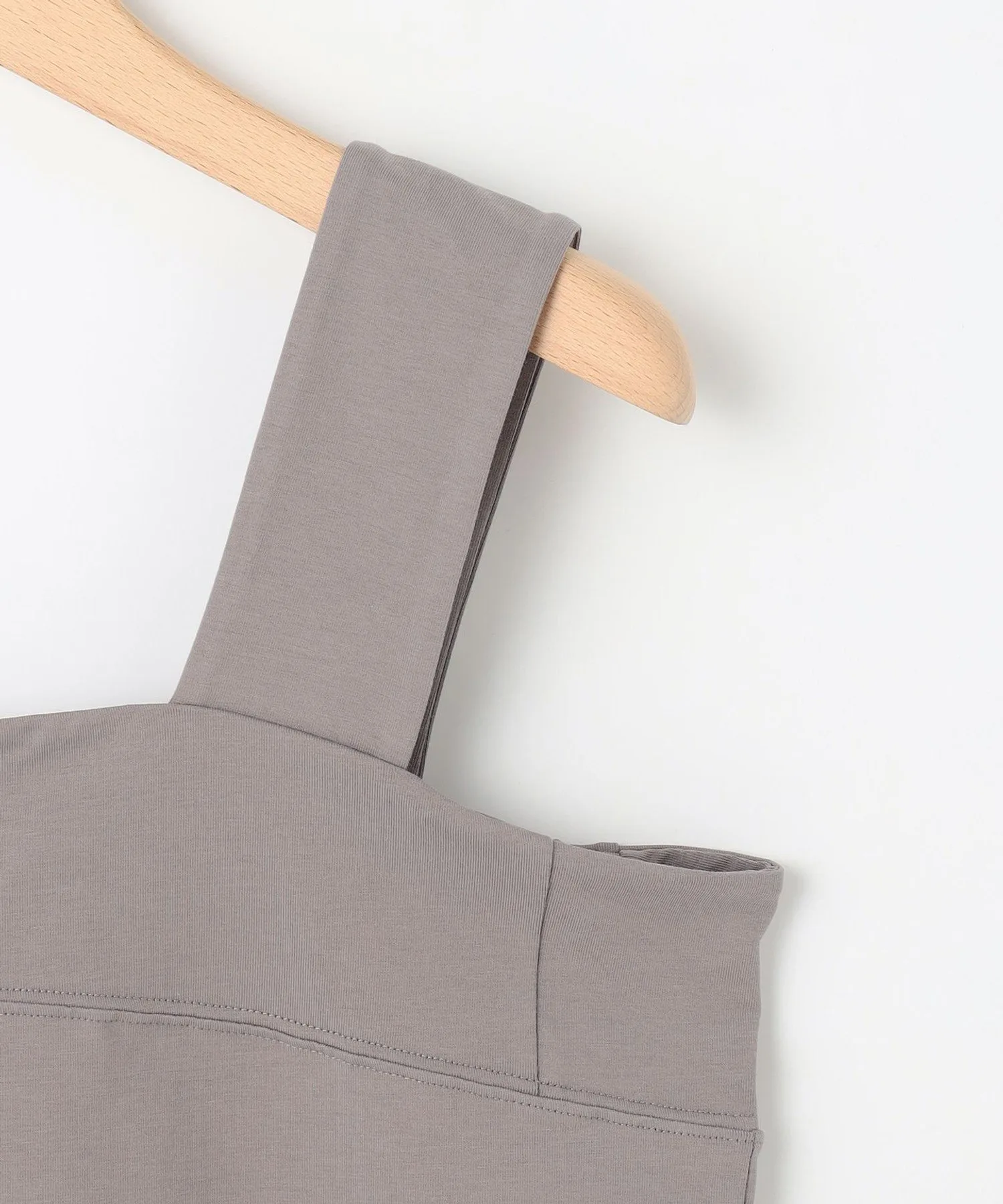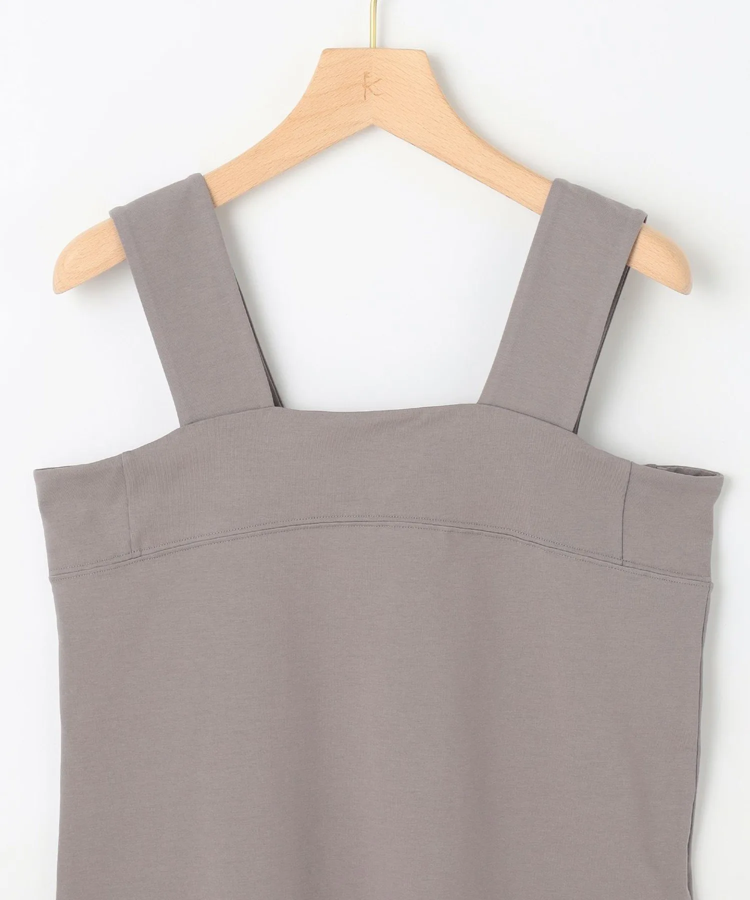 Дизайн・Квадратная майка с открытым верхом, с широкими бретелями, скрывающими грудь и бретели нижнего белья. ・Неглубокий квадратный вырез создает аккуратный силуэт вокруг груди и обеспечивает достаточное покрытие до подмышек. ・Эластичный материал облегает тело, а контрастная ткань над грудью предотвращает чрезмерное обнажение. ・Грудная часть имеет двойной слой для непрозрачного вида. ・Чередование плетения ткани в области подмышек (вертикальное спереди и горизонтальное сзади) обеспечивает плотное прикрытие подмышек, которые часто являются наиболее чувствительной зоной, создавая аккуратный вид.