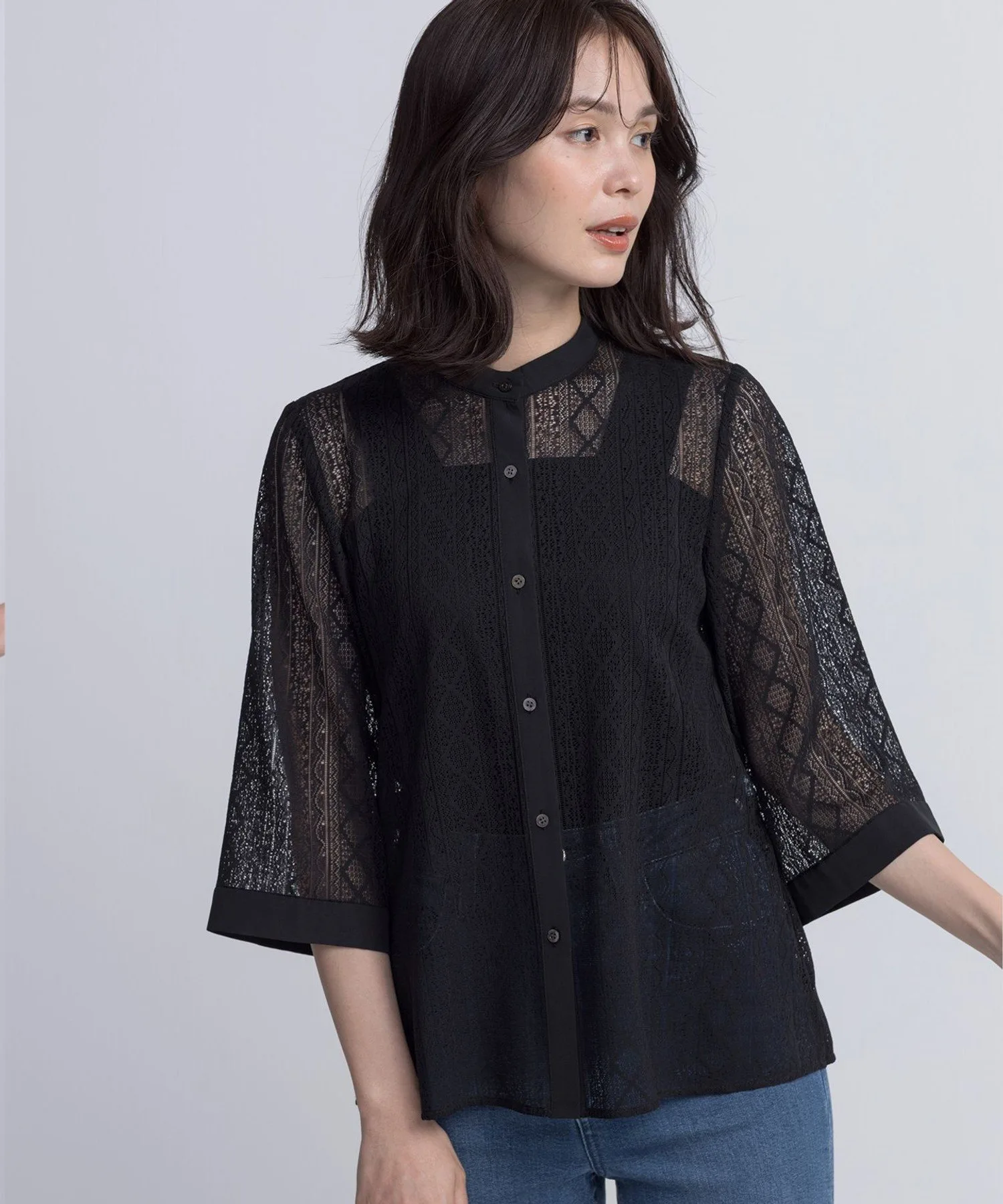 Дизайн・Квадратная майка с открытым верхом, с широкими бретелями, скрывающими грудь и бретели нижнего белья. ・Неглубокий квадратный вырез создает аккуратный силуэт вокруг груди и обеспечивает достаточное покрытие до подмышек. ・Эластичный материал облегает тело, а контрастная ткань над грудью предотвращает чрезмерное обнажение. ・Грудная часть имеет двойной слой для непрозрачного вида. ・Чередование плетения ткани в области подмышек (вертикальное спереди и горизонтальное сзади) обеспечивает плотное прикрытие подмышек, которые часто являются наиболее чувствительной зоной, создавая аккуратный вид.