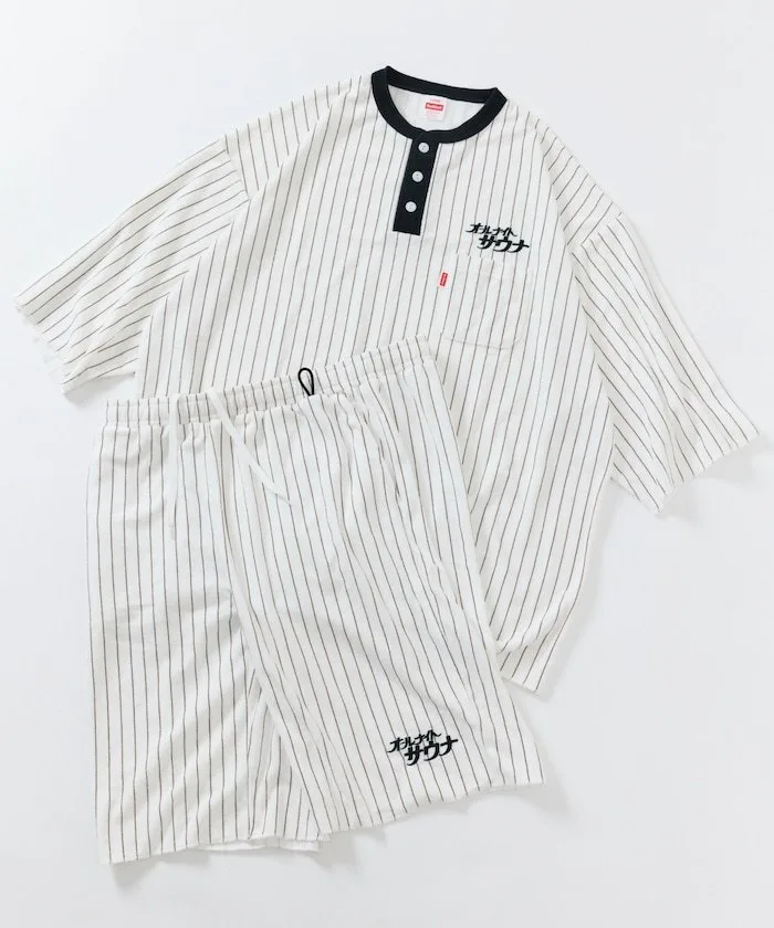 ●Комплект вдохновлен домашней одеждой, часто встречающейся в капсульных отелях и супер-общественных банях, с вышитым фирменным логотипом SAUVENIR «All Night Sauna».