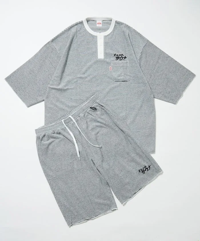 ●Комплект вдохновлен домашней одеждой, часто встречающейся в капсульных отелях и супер-общественных банях, с вышитым фирменным логотипом SAUVENIR «All Night Sauna».