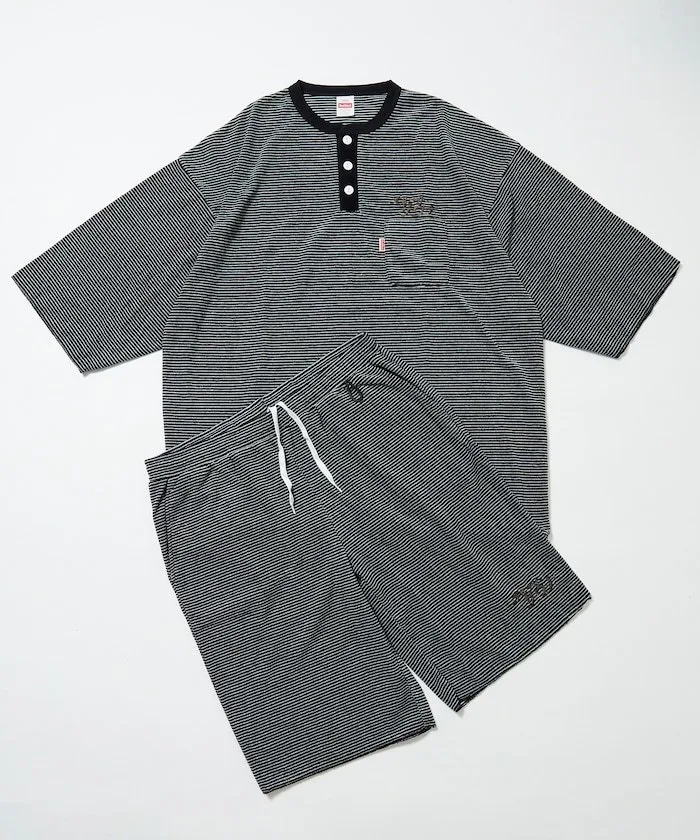 ●Комплект вдохновлен домашней одеждой, часто встречающейся в капсульных отелях и супер-общественных банях, с вышитым фирменным логотипом SAUVENIR «All Night Sauna».