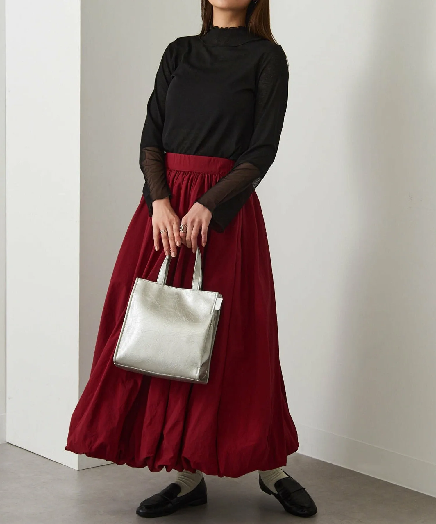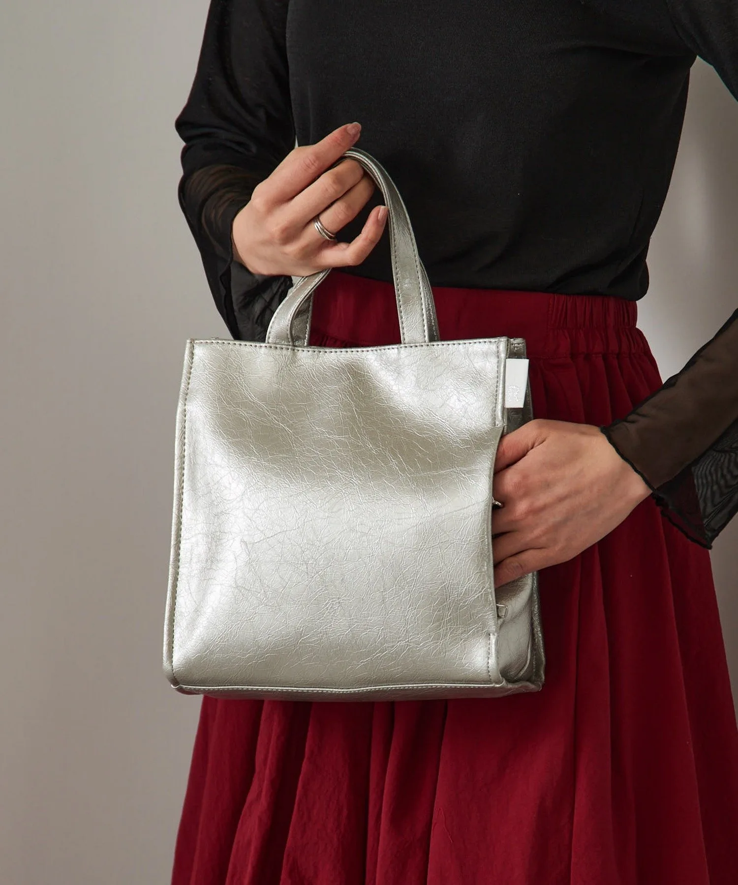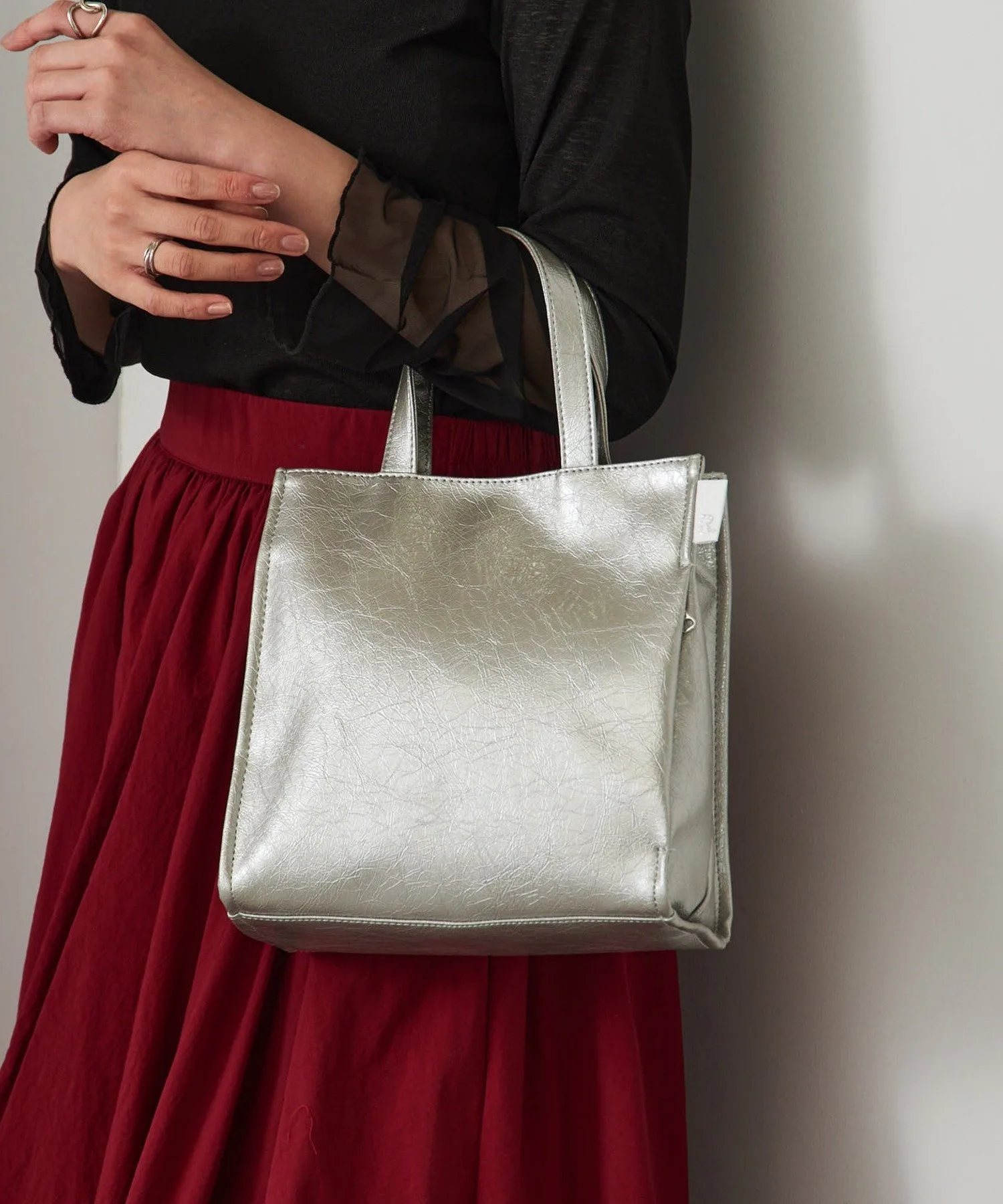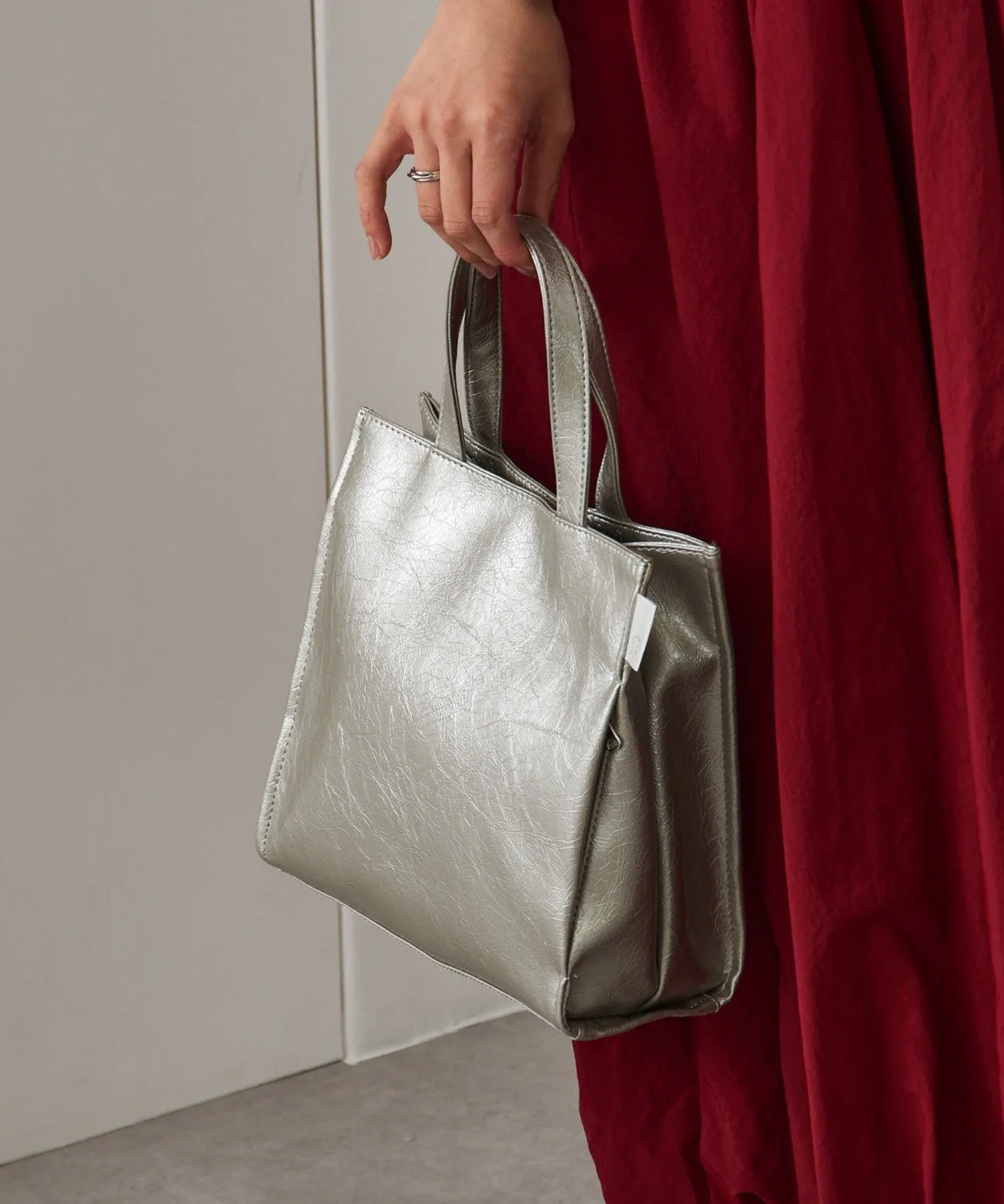 Сочетайте・Эта элегантная сумка-тоут рекомендуется для чистого, повседневного офисного стиля. ・Идеально подходит для простых повседневных нарядов, таких как полосатые топы и джинсы. ・Добавьте акценты к простым однотонным стилям с помощью глянцевых цветовых вариаций, создавая гламурный образ.