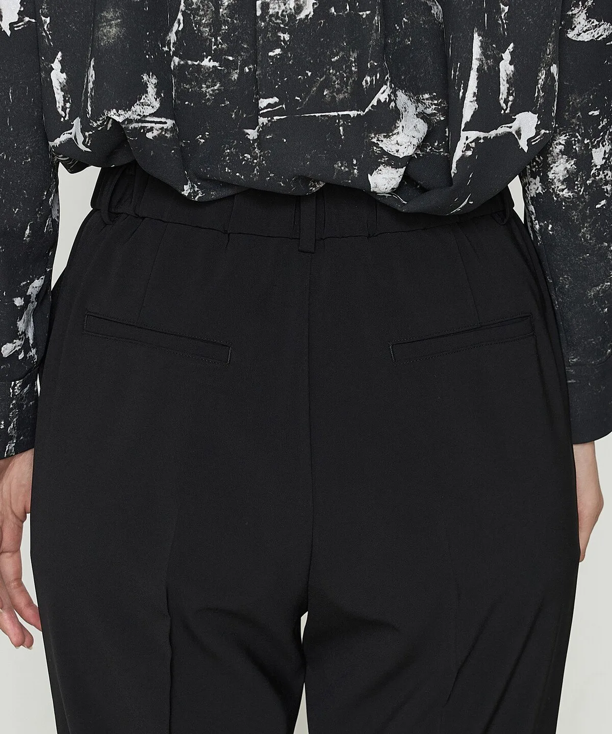 Центральная складка придает им аккуратный вид, а небольшое сужение в области колен создает иллюзию более длинных ног.