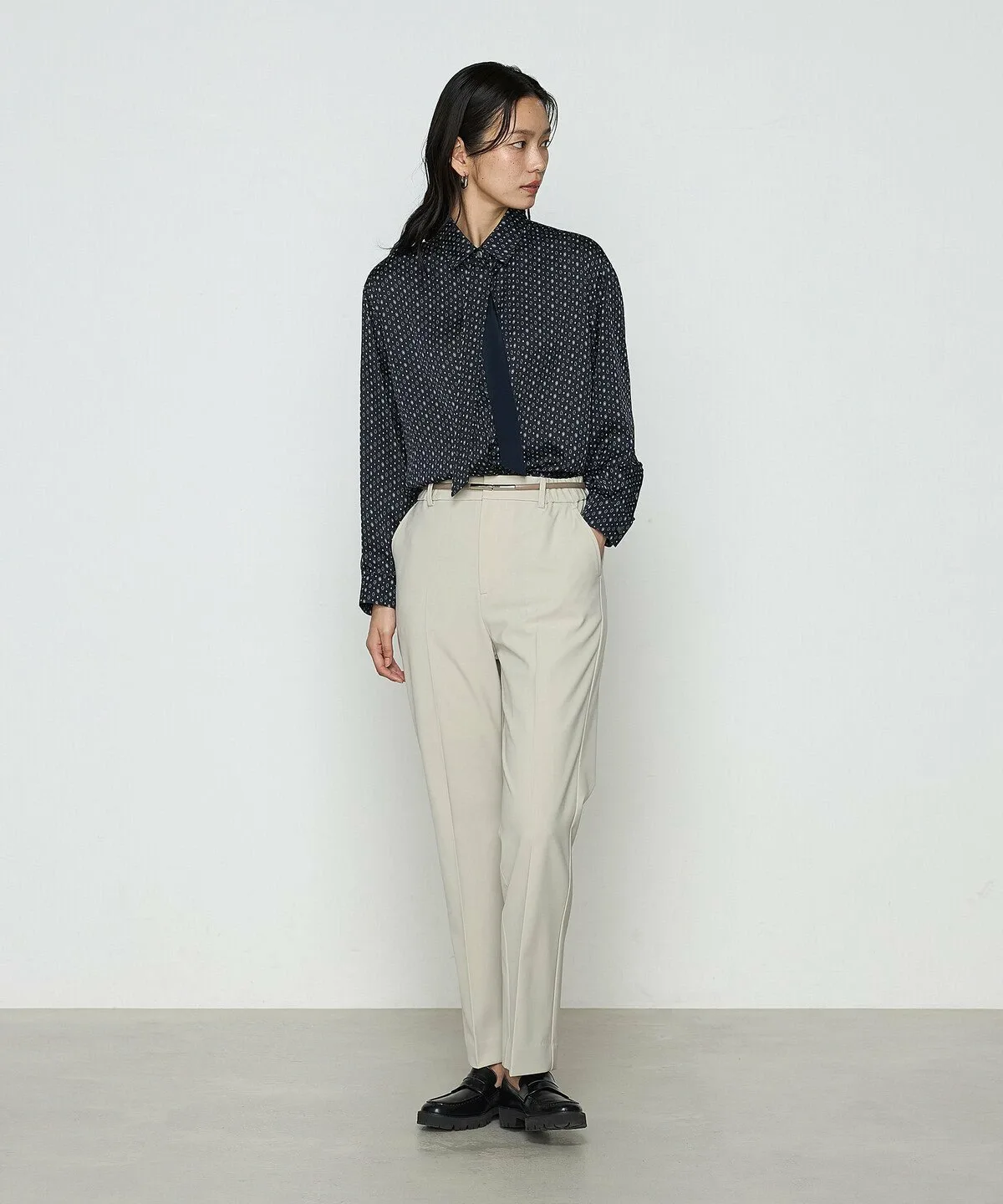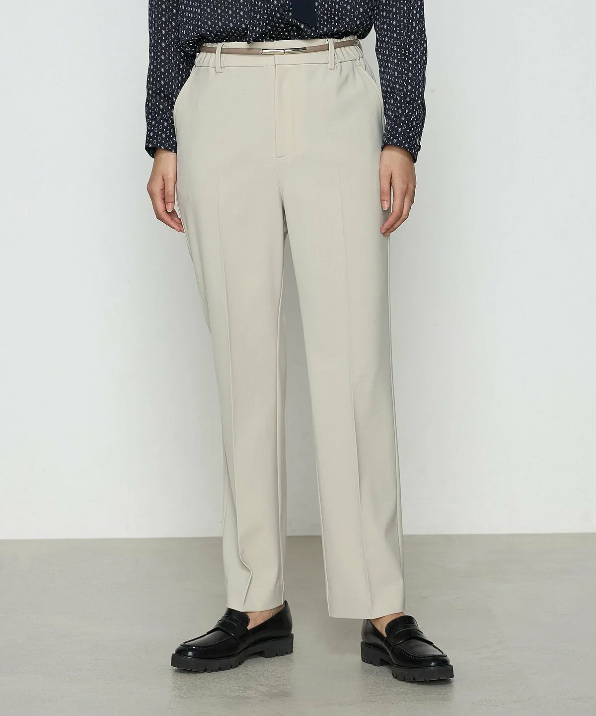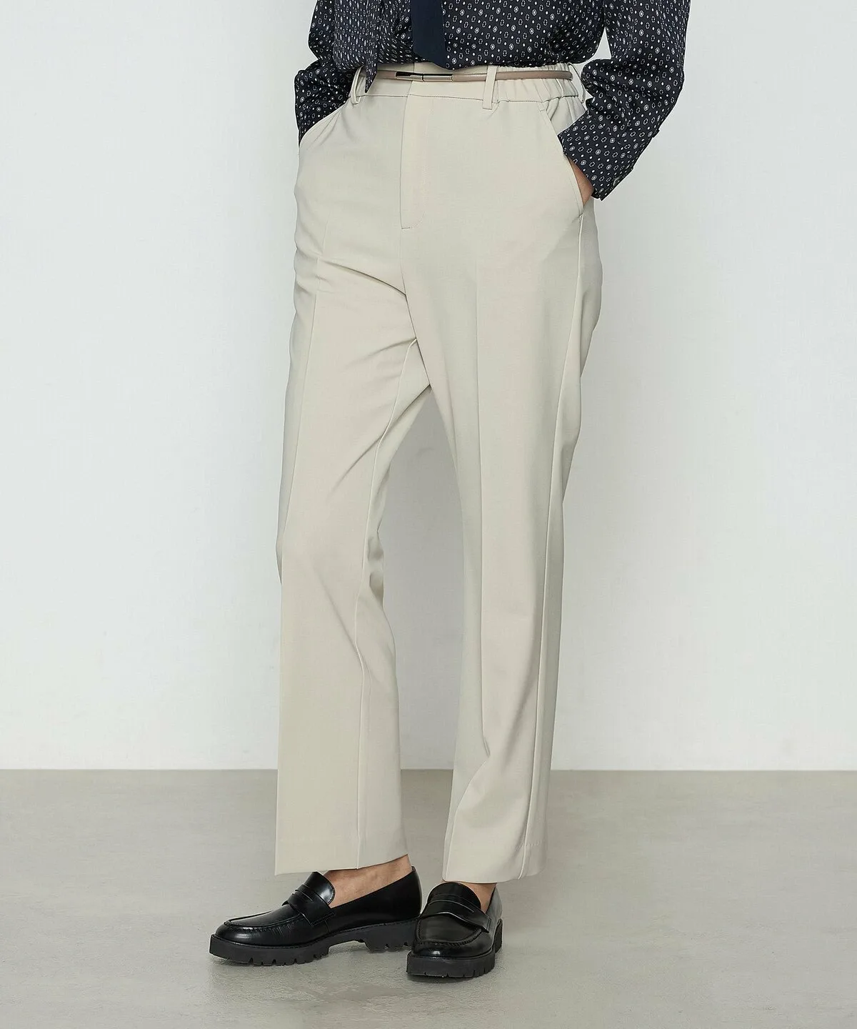 Центральная складка придает им аккуратный вид, а небольшое сужение в области колен создает иллюзию более длинных ног.