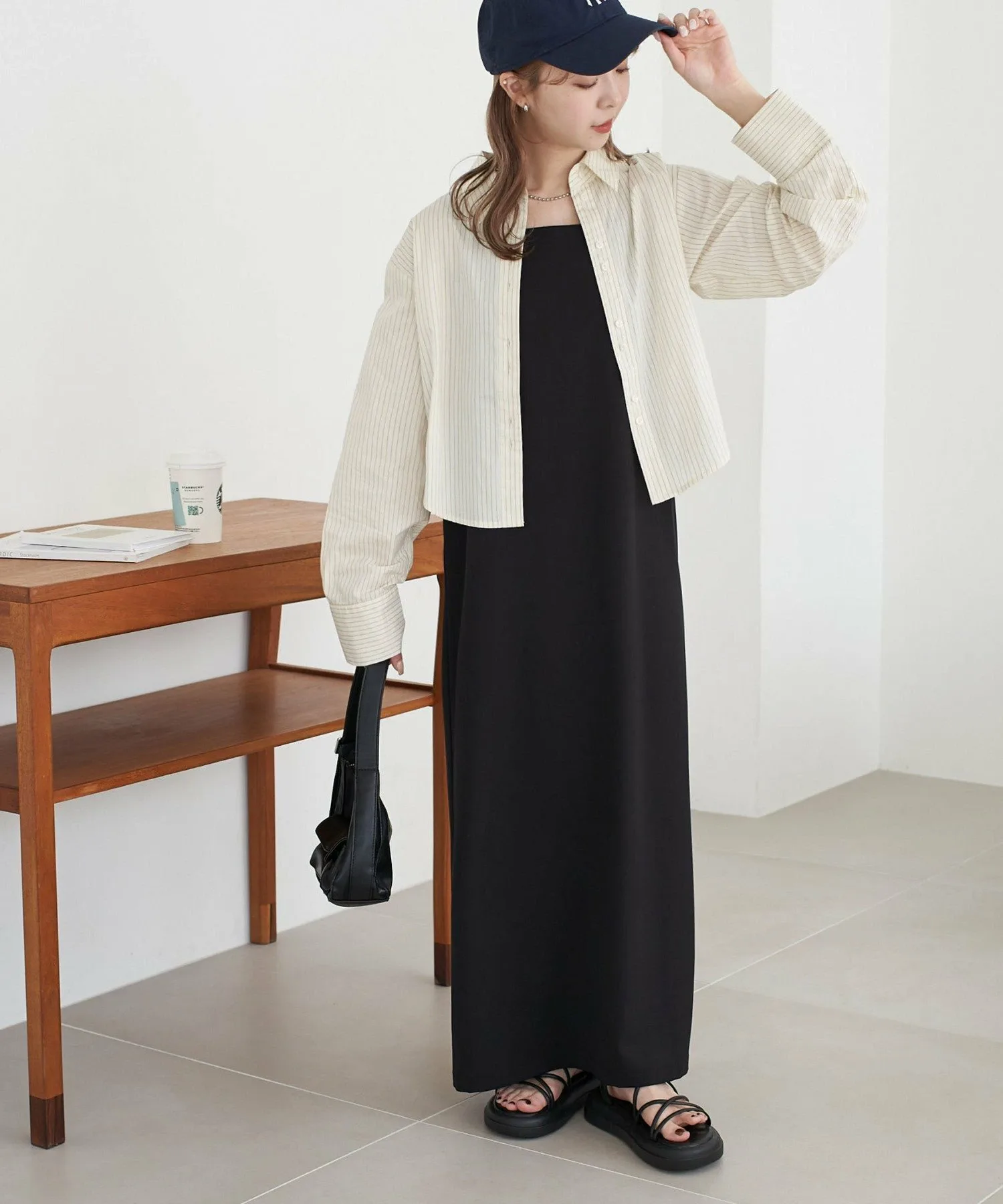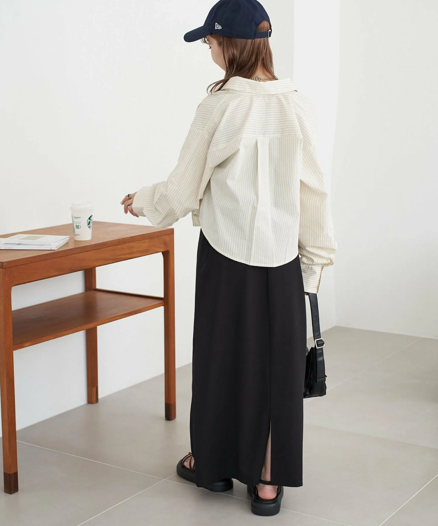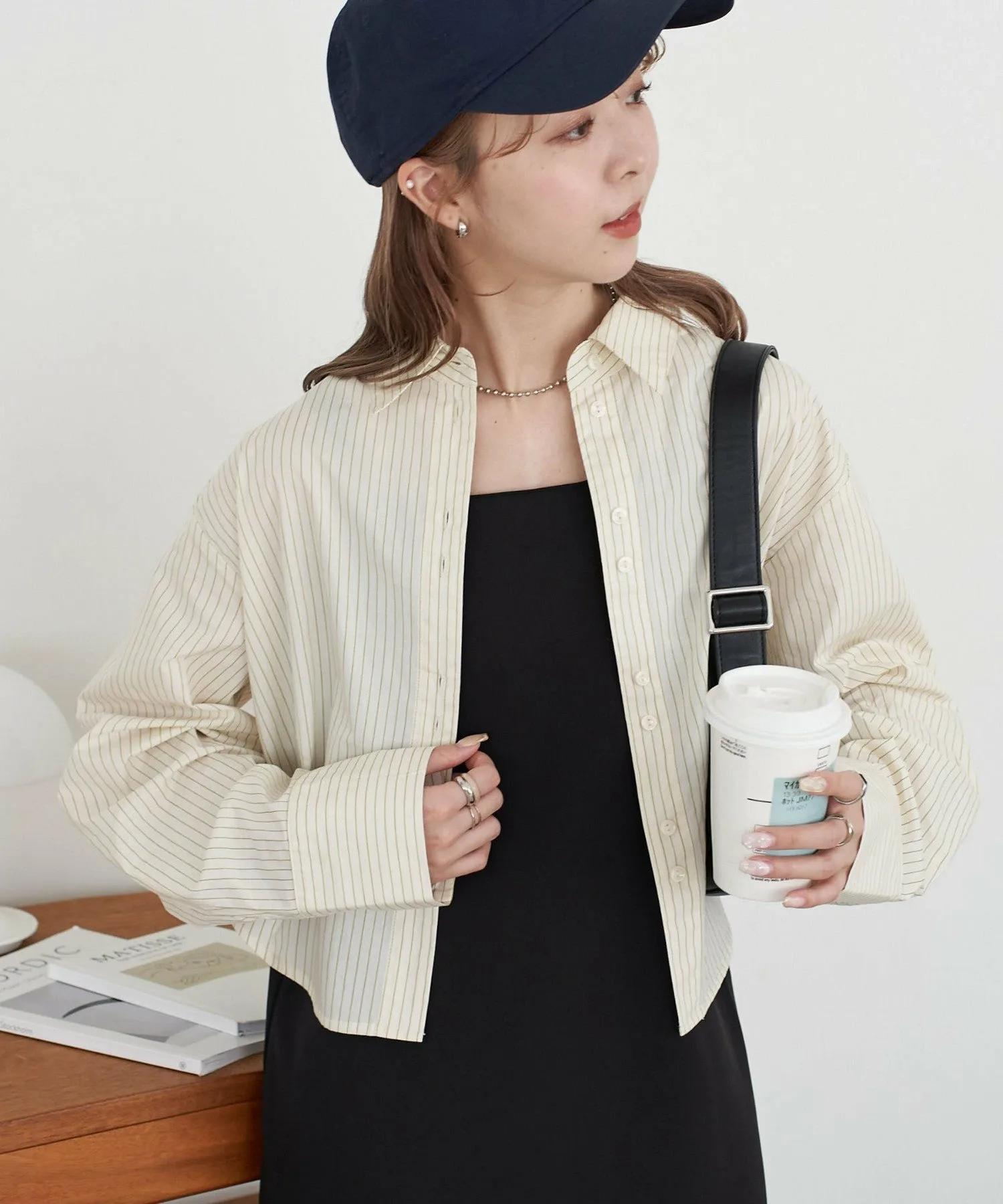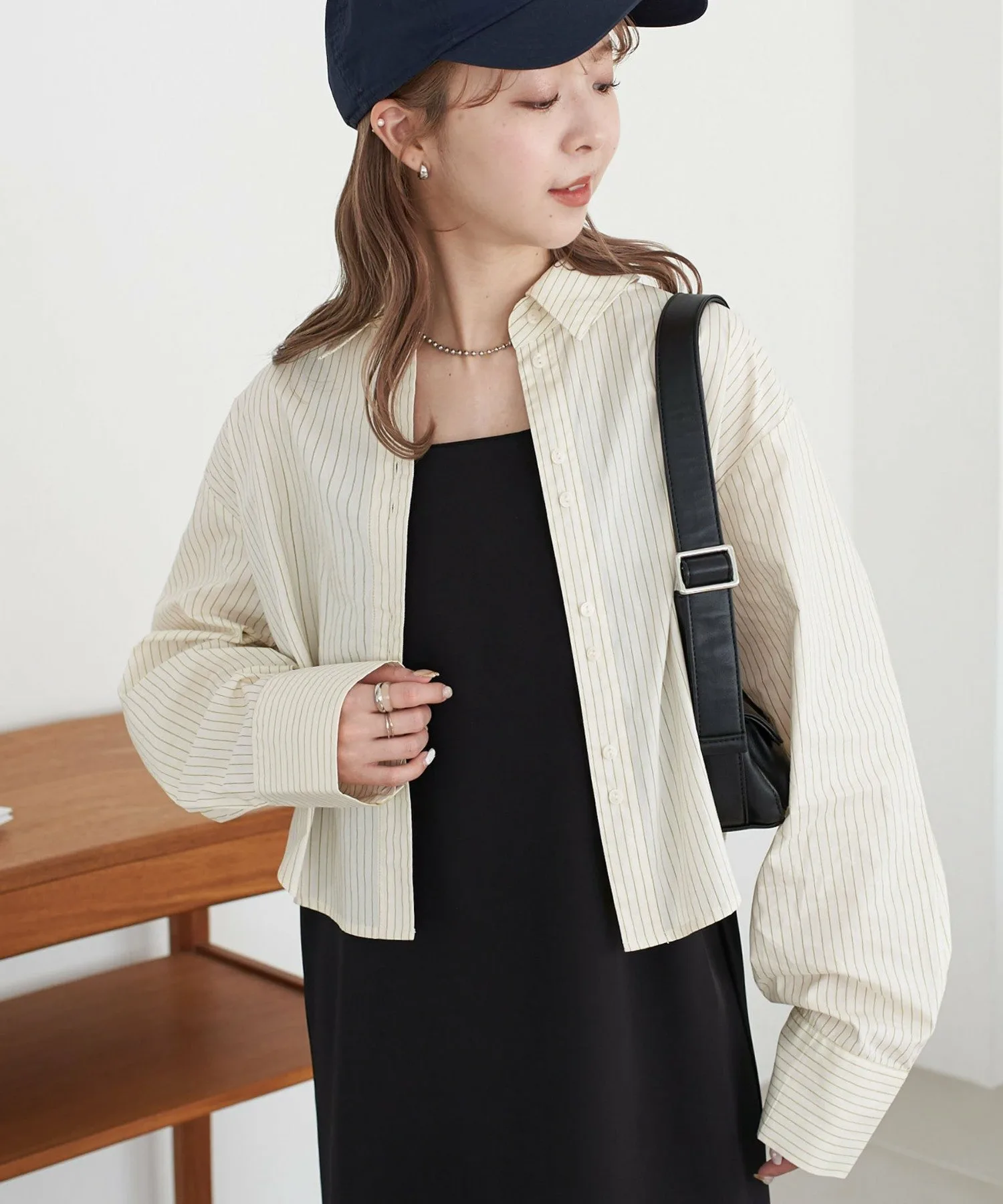 Сотрудница ростом 162 см (размер M): Рукава имеют идеальный свободный крой, закрывая тыльную сторону кистей. Она легкая и удобная в ношении, поэтому выглядит так, будто ее можно носить как куртку с весны до осени. ◎