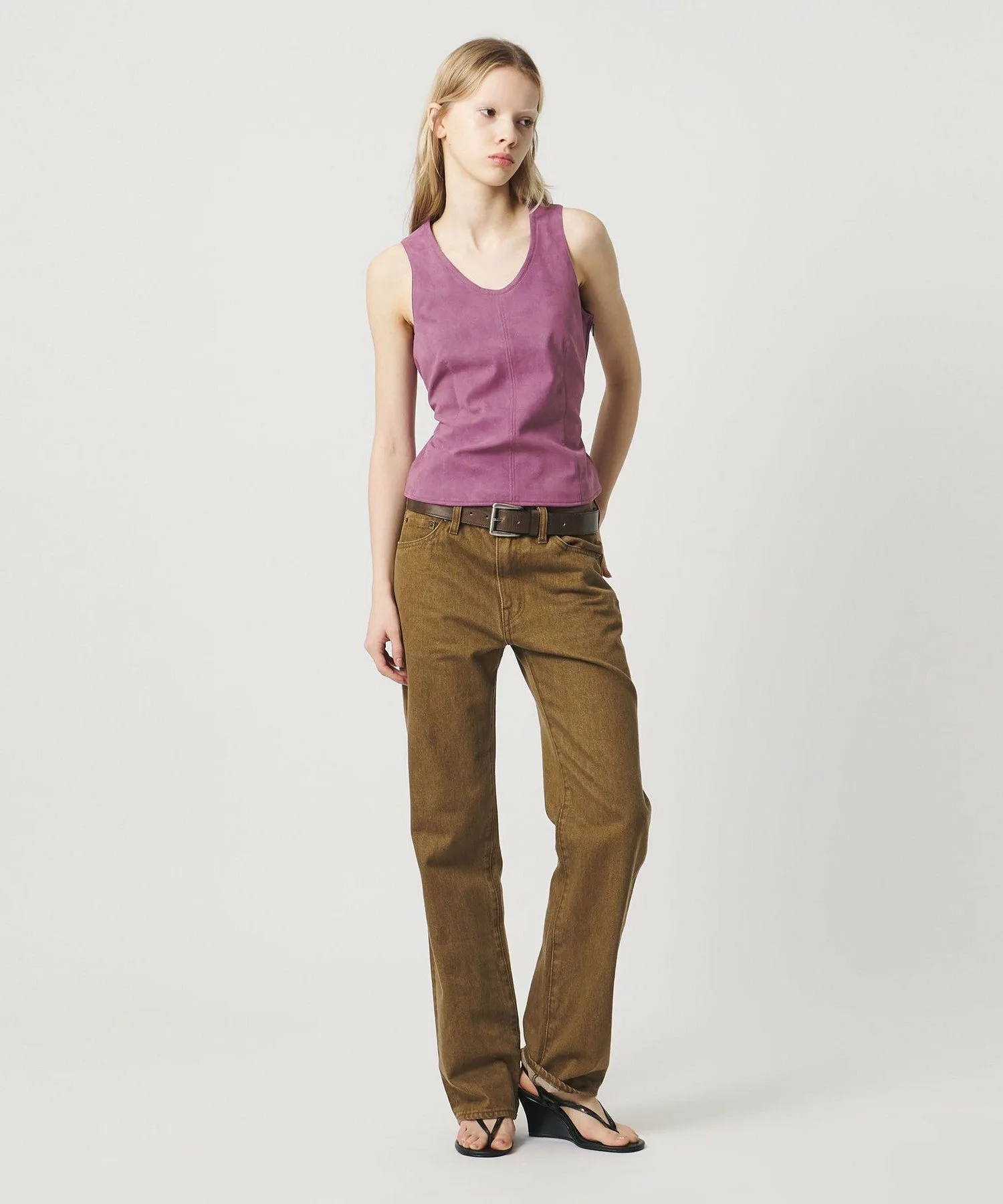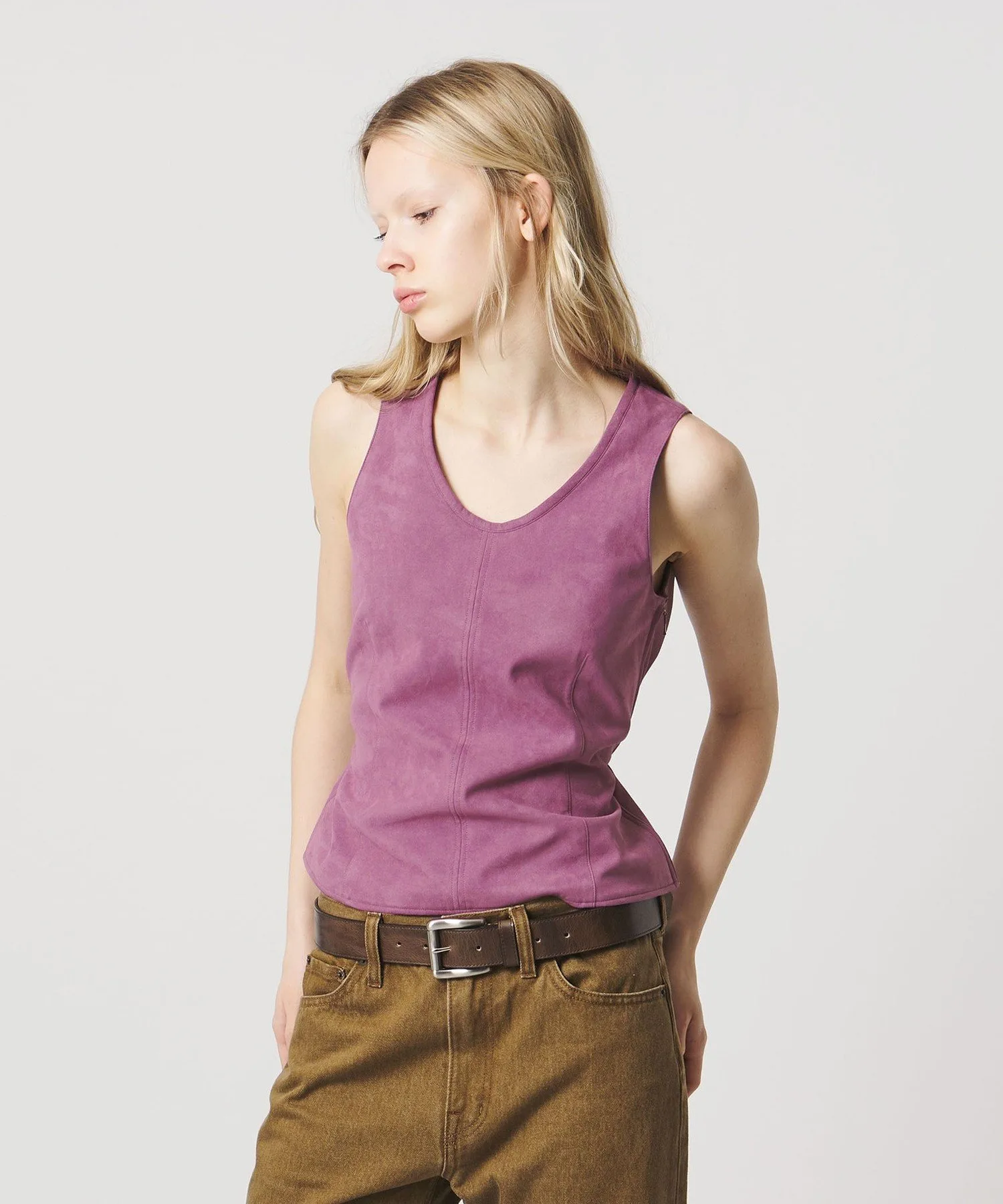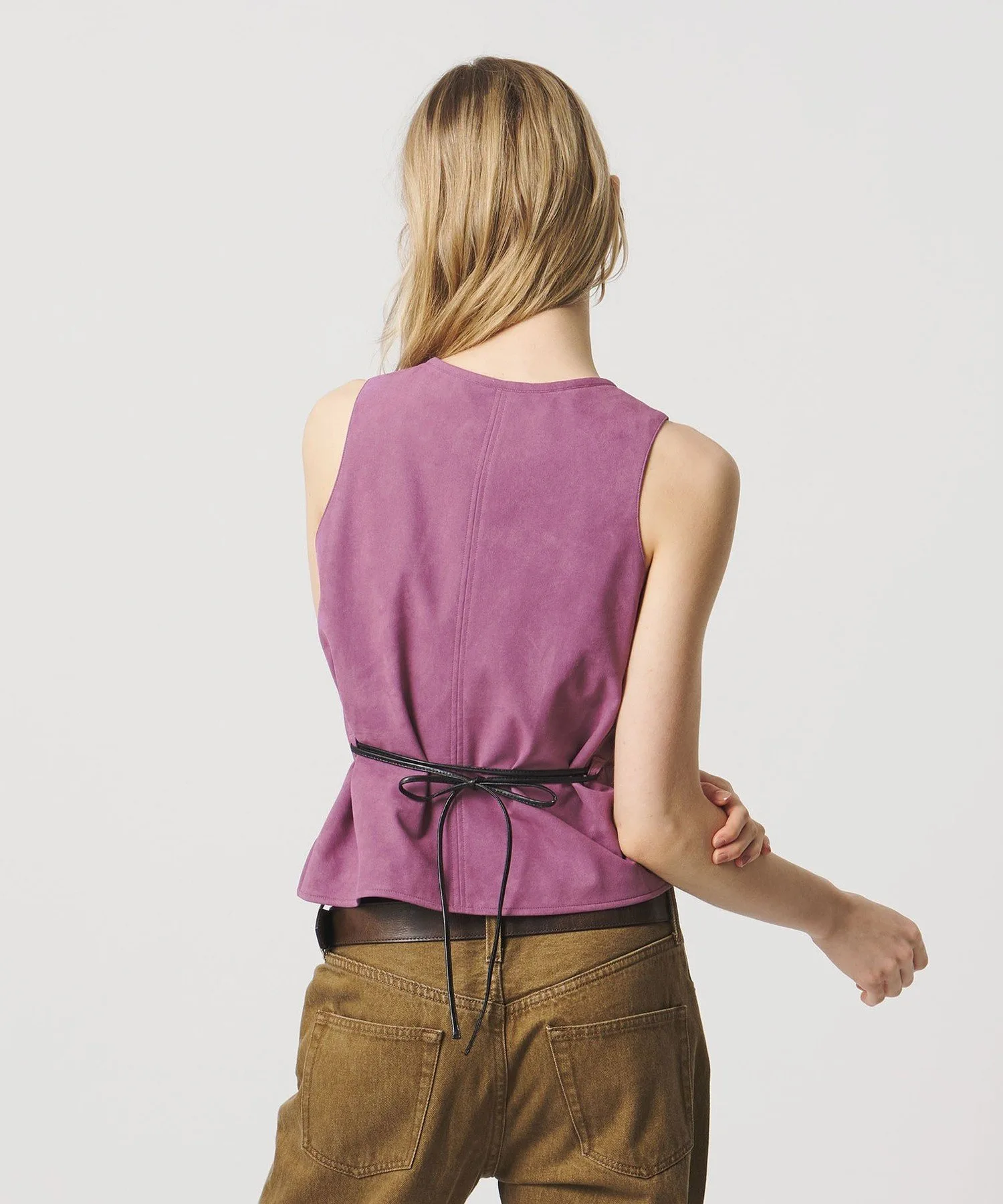 Замшевый топ в стиле жилета, излучающий ностальгическое настроение.