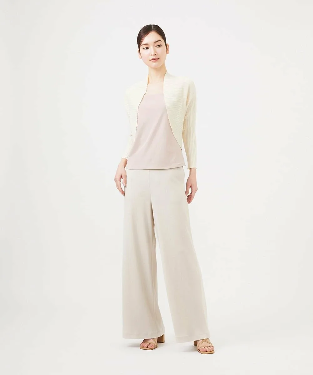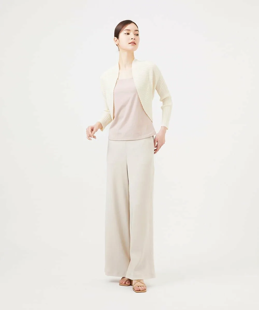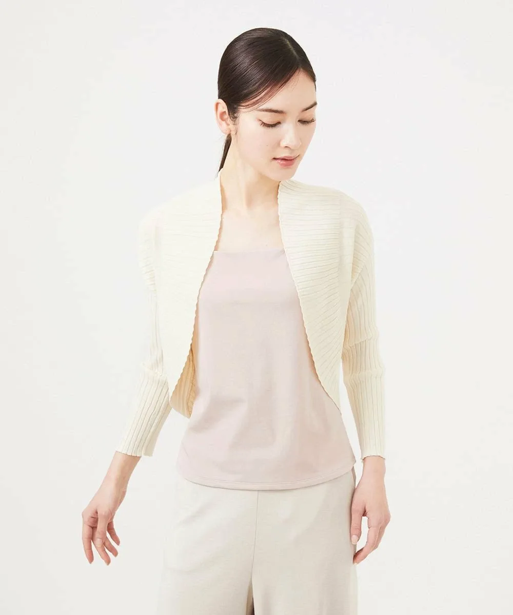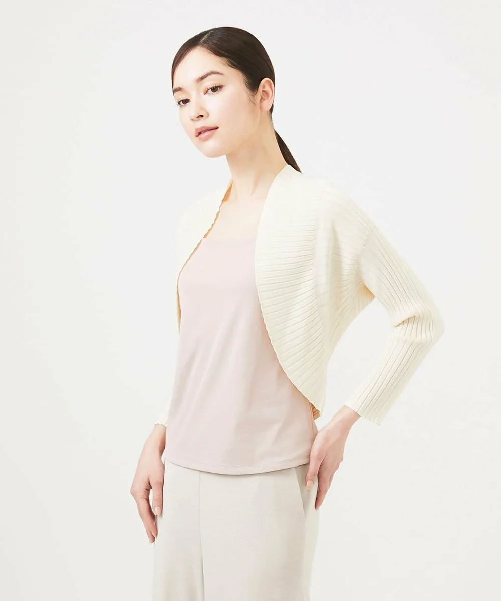 Красивый жакет в стиле болеро с плавным переходом между тонкой и толстой ребристой отделкой.
