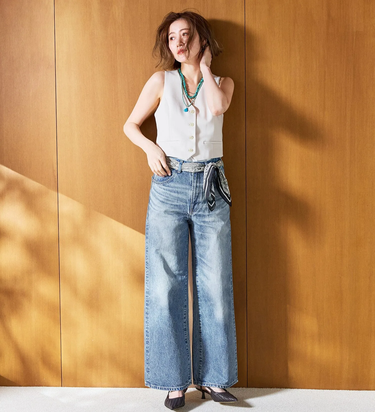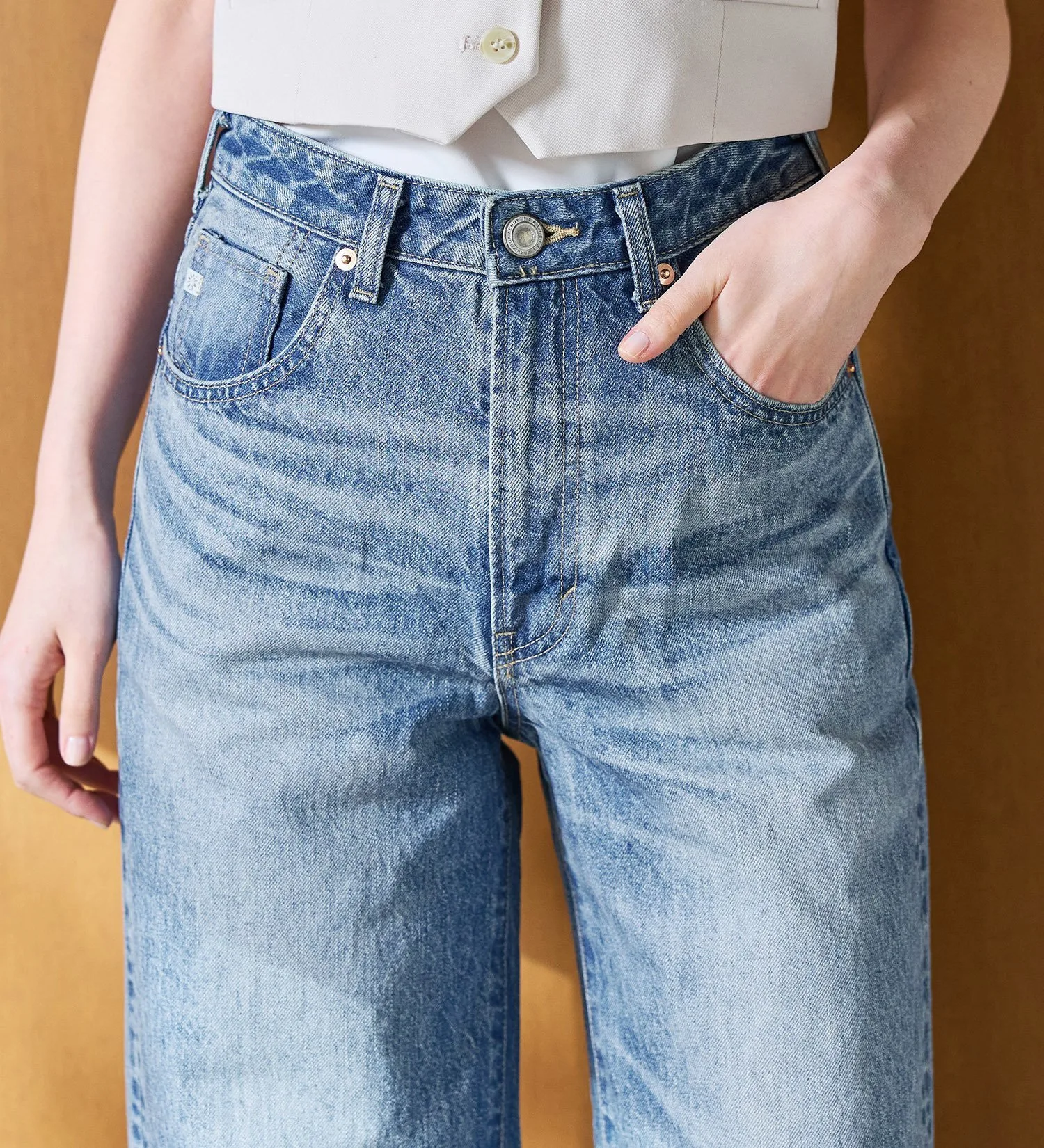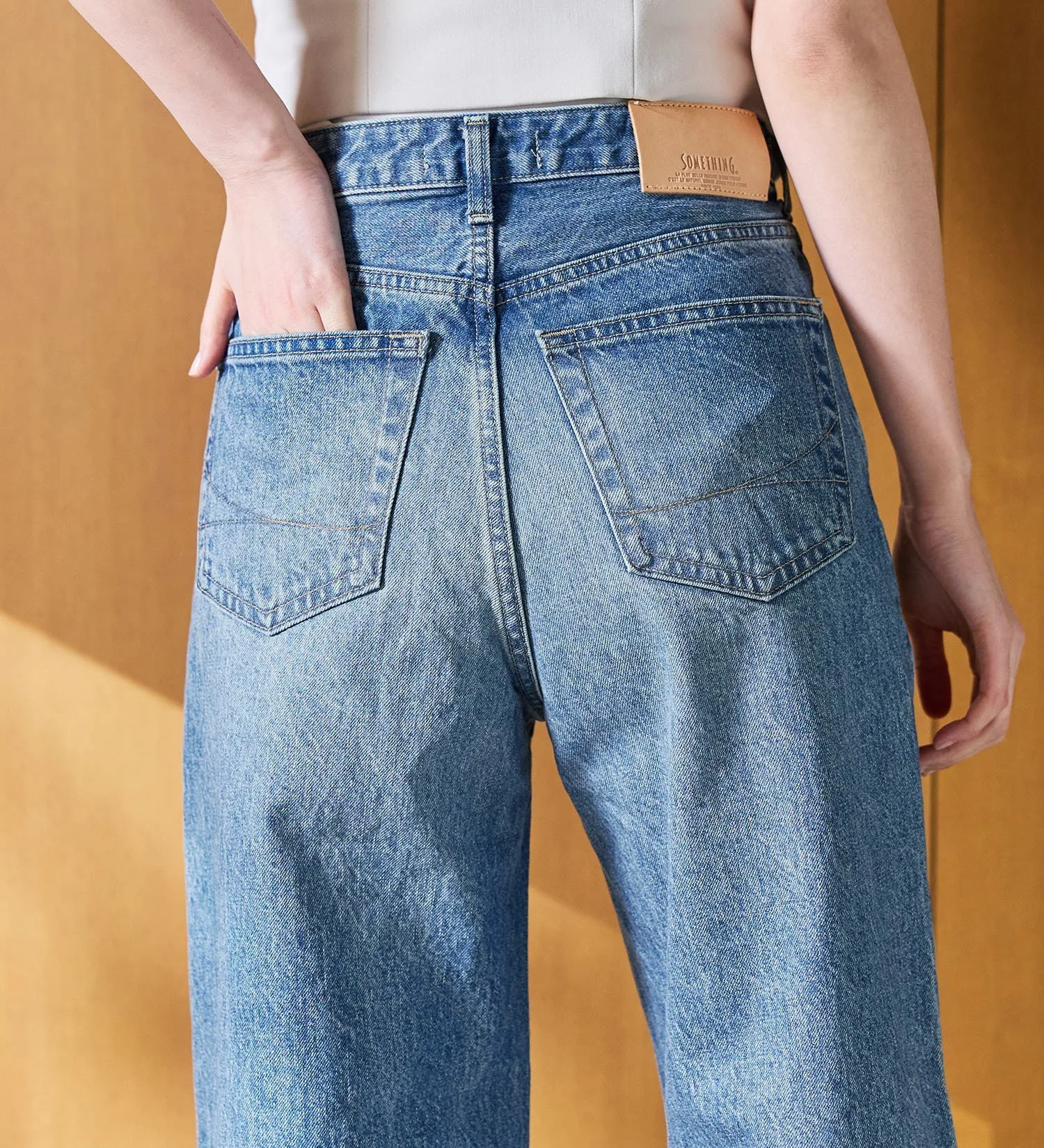 Изготовлено из аутентичной джинсовой ткани с винтажным оттенком. Более толстые нити основы придают ткани текстурированную и плотную структуру, обеспечивая надежную фиксацию. Нити утка представляют собой смесь кольцевых и оригинальных нитей, создавая текстурированную поверхность, немного отличающуюся от предыдущих моделей SOMETHING.