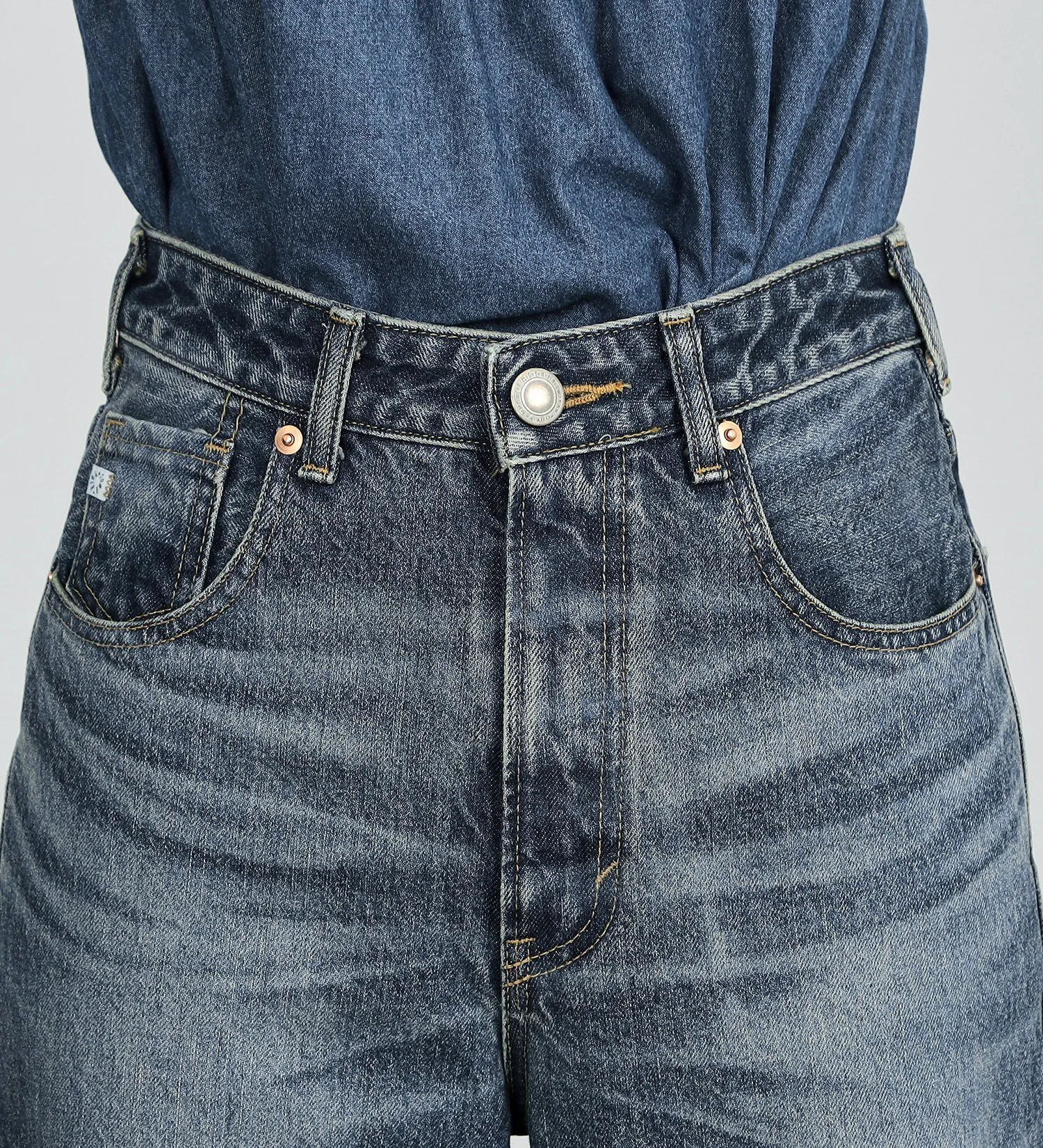 Изготовлено из аутентичной джинсовой ткани с винтажным оттенком. Более толстые нити основы придают ткани текстурированную и плотную структуру, обеспечивая надежную фиксацию. Нити утка представляют собой смесь кольцевых и оригинальных нитей, создавая текстурированную поверхность, немного отличающуюся от предыдущих моделей SOMETHING.