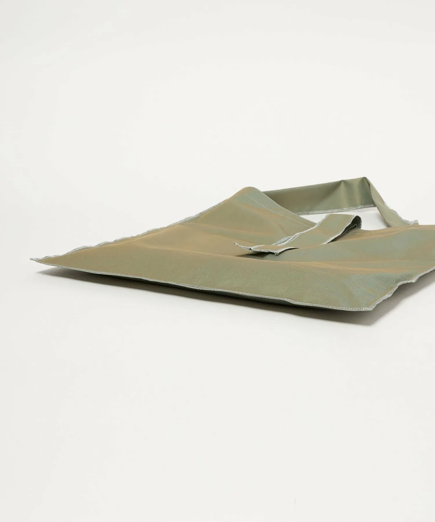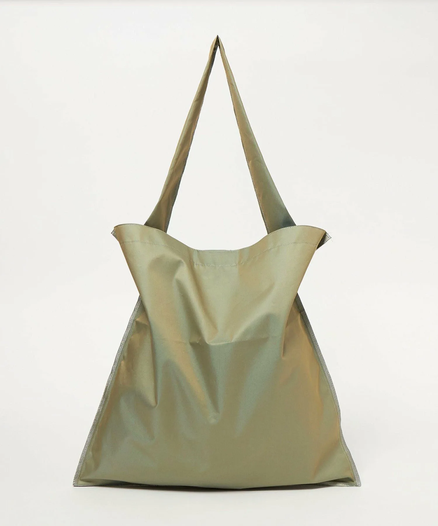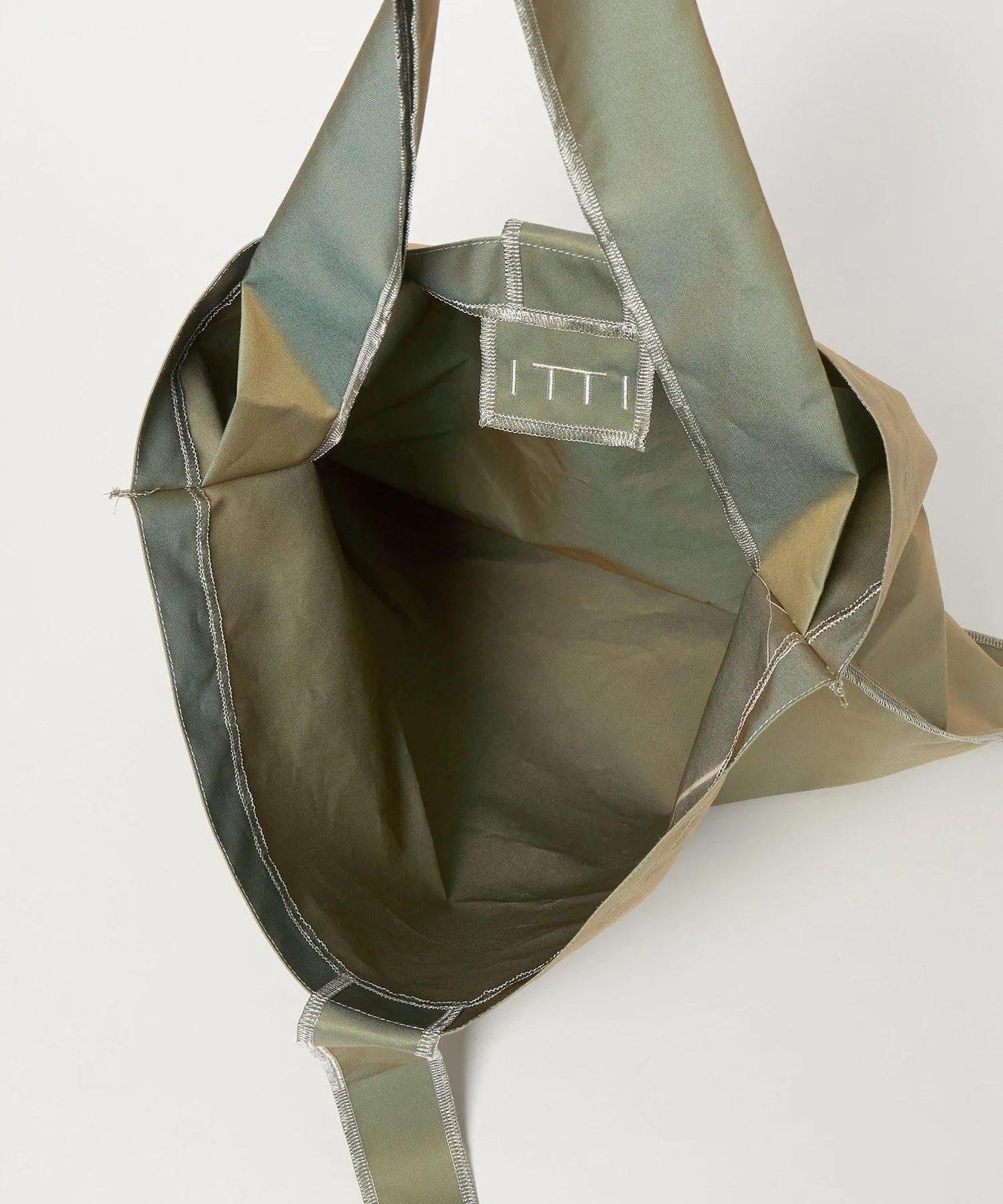 Эта сумка размера L, изготовленная на заказ, выполнена из ткани оливкового цвета с переливающимся блеском, похожим на тот, что используется в тренчах.