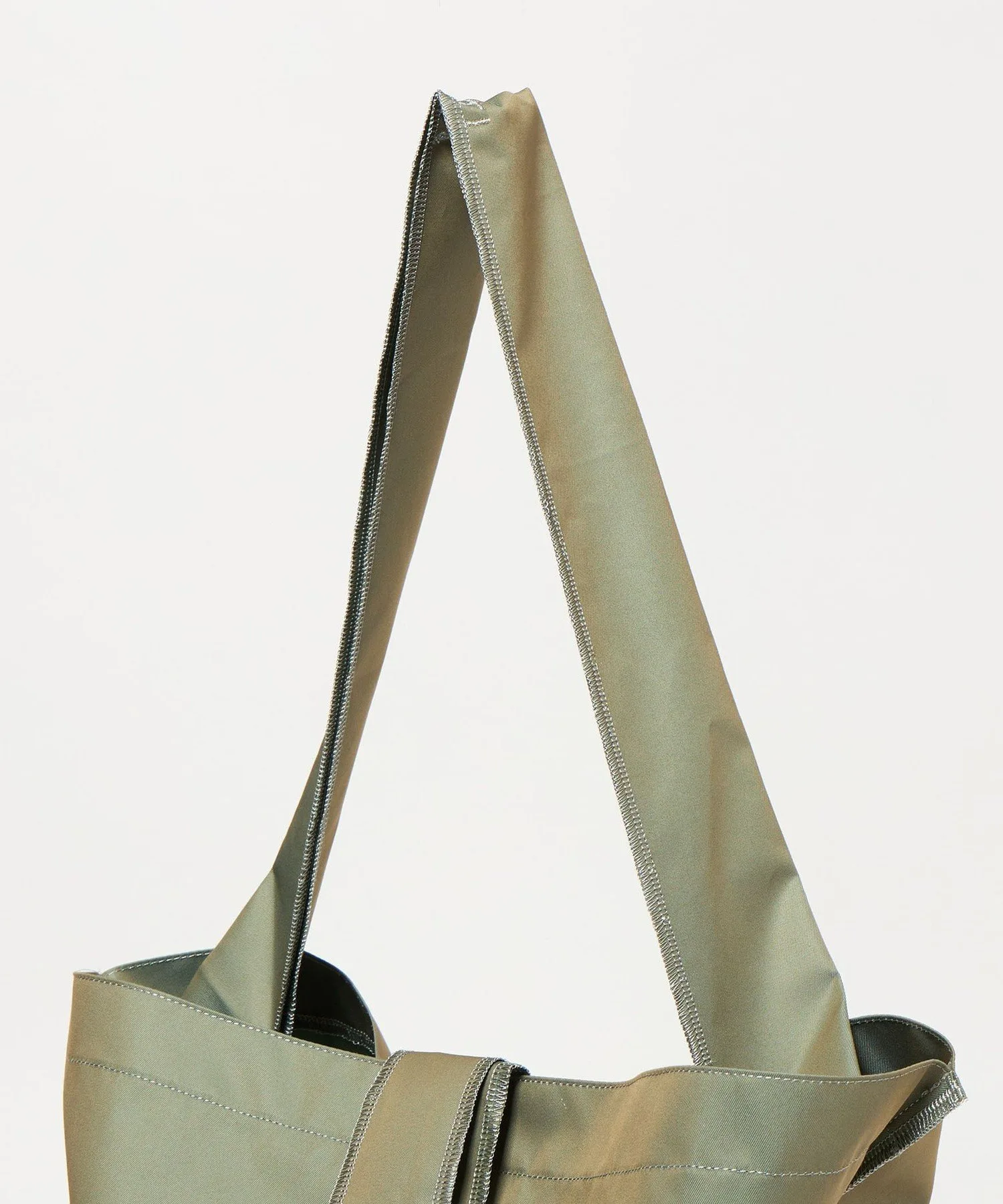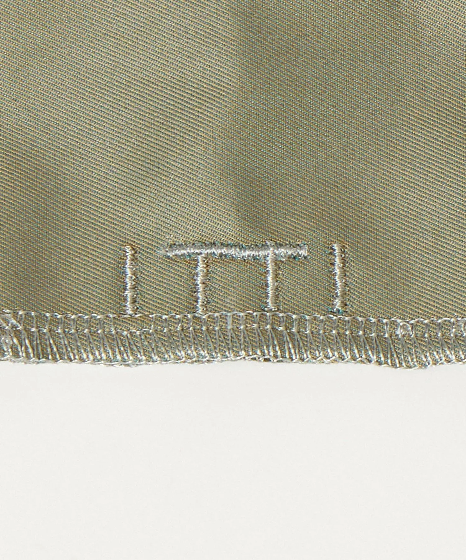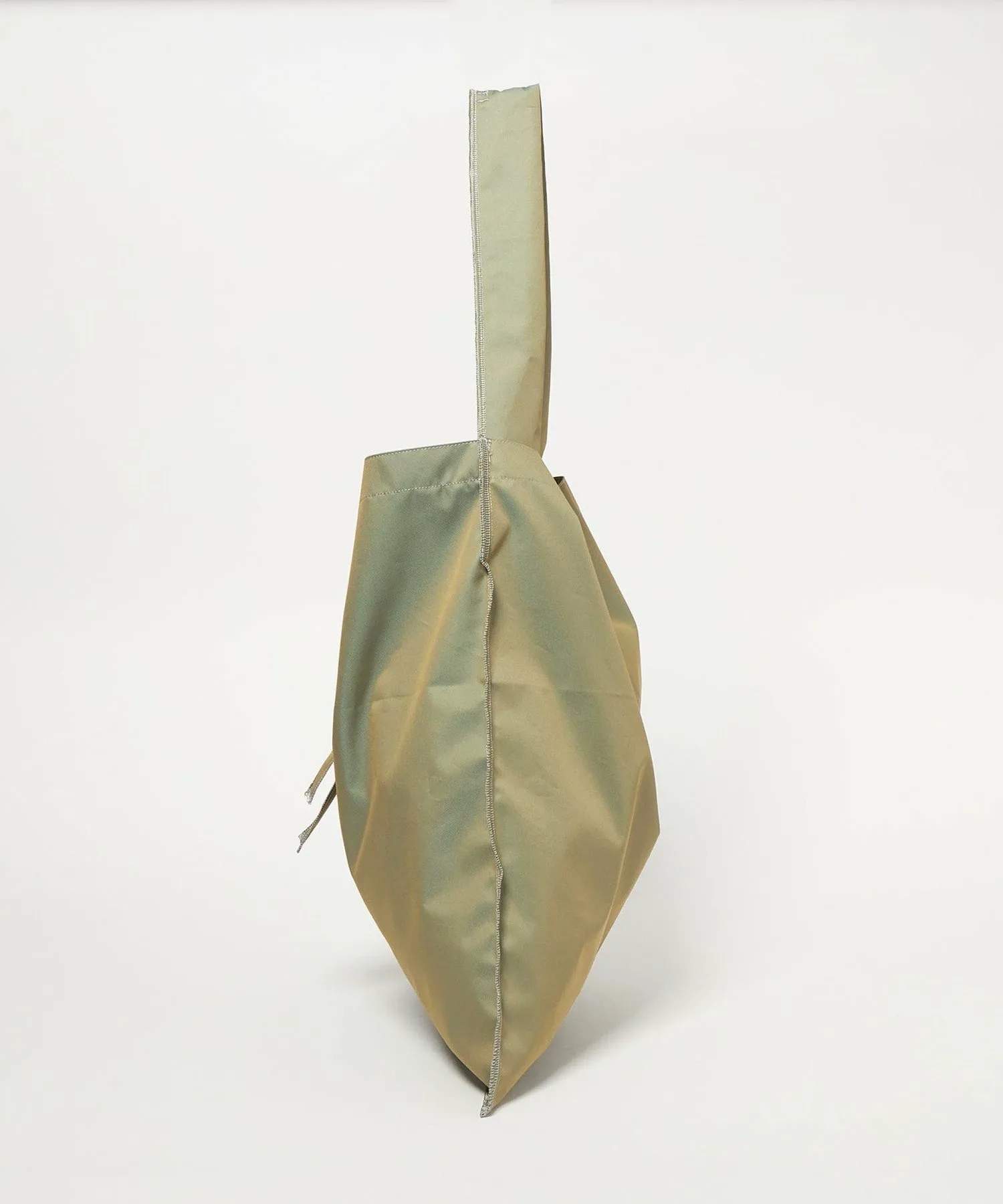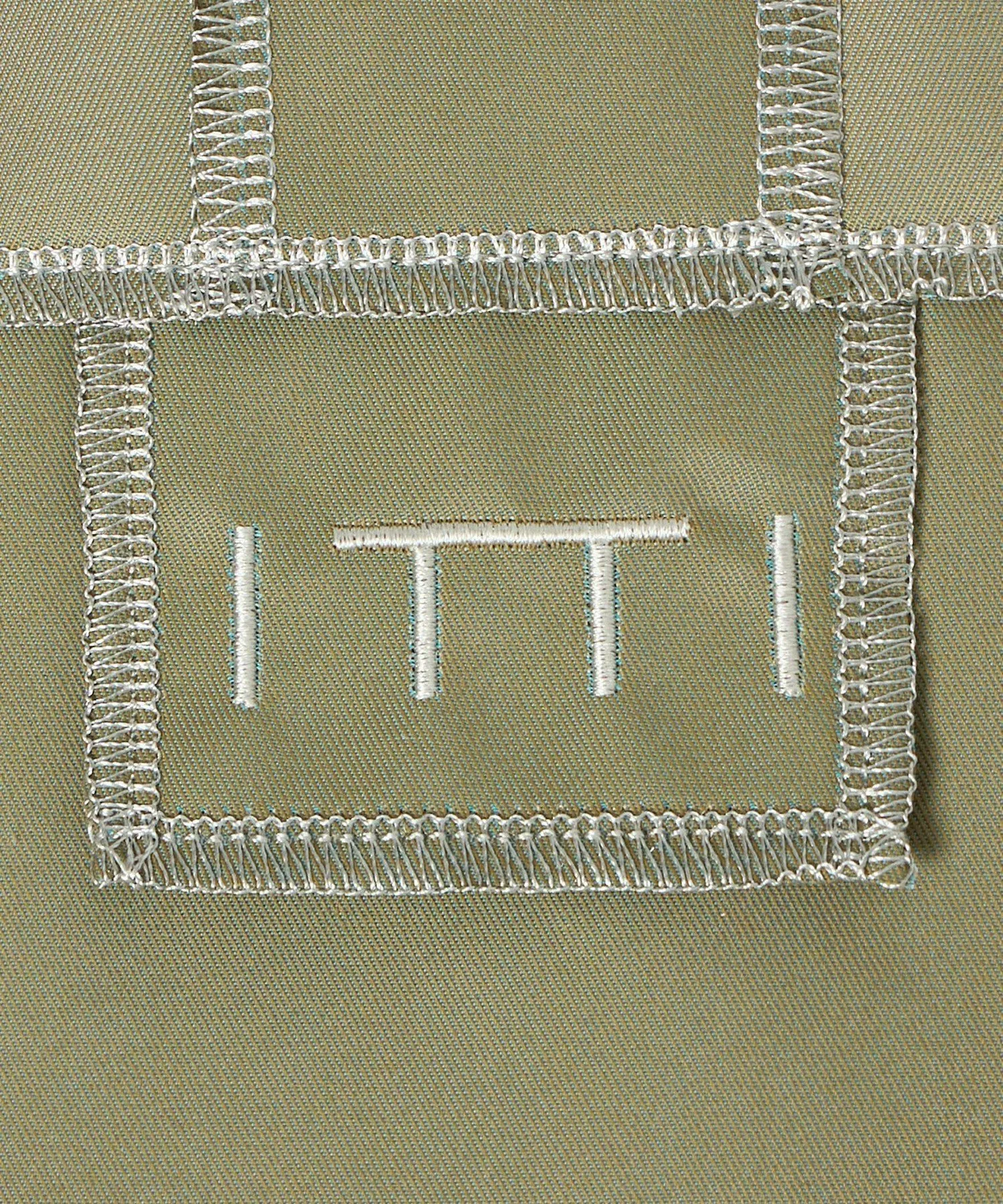 Эта сумка размера L, изготовленная на заказ, выполнена из ткани оливкового цвета с переливающимся блеском, похожим на тот, что используется в тренчах.