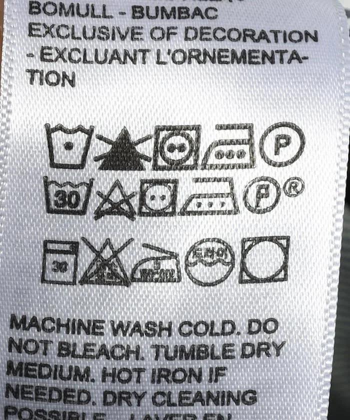 Инструкции по уходу: Машинная стирка, не отбеливать, сушить в сушилке, гладить, химчистка.