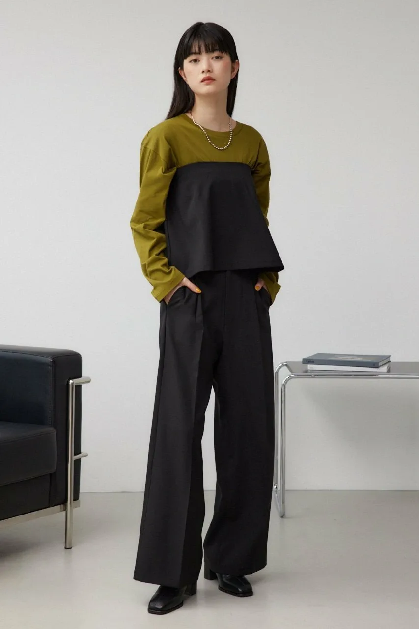 Брюки имеют складки и центральную складку, создавая силуэт, который выглядит красиво даже сам по себе.