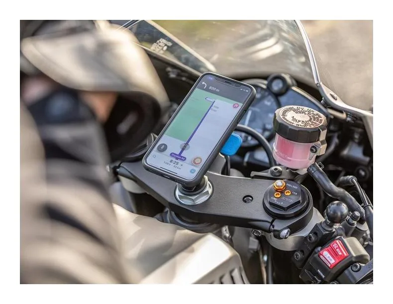 Чехлы для iPhone с четырьмя замками предназначены для надежного и удобного крепления вашего телефона к мотоциклу. Он совместим с креплениями на руль, зеркала и вынос вилки Quad Lock, что делает его пригодным для различных применений. Прикрепить и отсоединить телефон от крепления очень просто благодаря легкому повороту и фиксации, обеспечиваемому запатентованным двухступенчатым механизмом блокировки. Это гарантирует, что ваш телефон останется в безопасности во время поездки, независимо от того, путешествуете ли вы по проселочным дорогам или преодолеваете пересеченную местность.