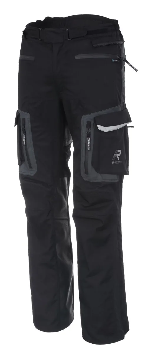Брюки Rukka Rimor-R оснащены функциями, защищающими гонщиков от непогоды. Дышащий и водонепроницаемый слой Gore-Tex 2 ламинирован с легким и прочным полиэстером с устойчивыми к истиранию усилениями Cordura 500D на коленях, бедрах и в области сиденья. Карманы на брюках для защиты бедер и коленей. Все доспехи продаются отдельно. Вентиляционные зоны спереди и сзади на бедрах обеспечивают равномерную циркуляцию воздуха по всей длине брюк. Четыре кармана на молнии снаружи позволяют райдерам надежно хранить мобильные устройства и ценные вещи. Система сидений AirCushion сочетается с термо- и износостойкими кожаными вставками на внутренней стороне коленей и в зоне сиденья для комфорта и защиты от горячих труб.