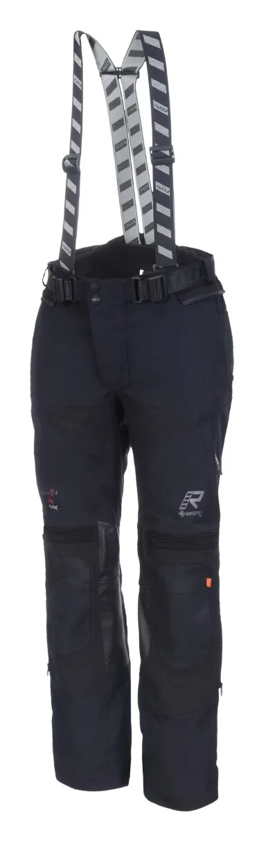 Брюки Rukka Shield-R оснащены функциями, обеспечивающими защиту гонщиков от дороги и непогоды. Дышащий и водонепроницаемый слой Gore-Tex Pro 3 ламинирован с устойчивой к истиранию и разрыву тканью Cordura с усилением Armacor и Keprotec на коленях и бедрах. Shield-R поставляется в комплекте с защитой бедер и коленей D3O Air XTR для полной защиты водителя. Вентиляционные зоны в передней и задней части бедер обеспечивают равномерную циркуляцию воздуха по всей длине брюк. Система сидений AirCushion сочетается с термо- и износостойкими кожаными вставками на внутренней стороне коленей и в зоне сиденья для комфорта и защиты от горячих труб.
